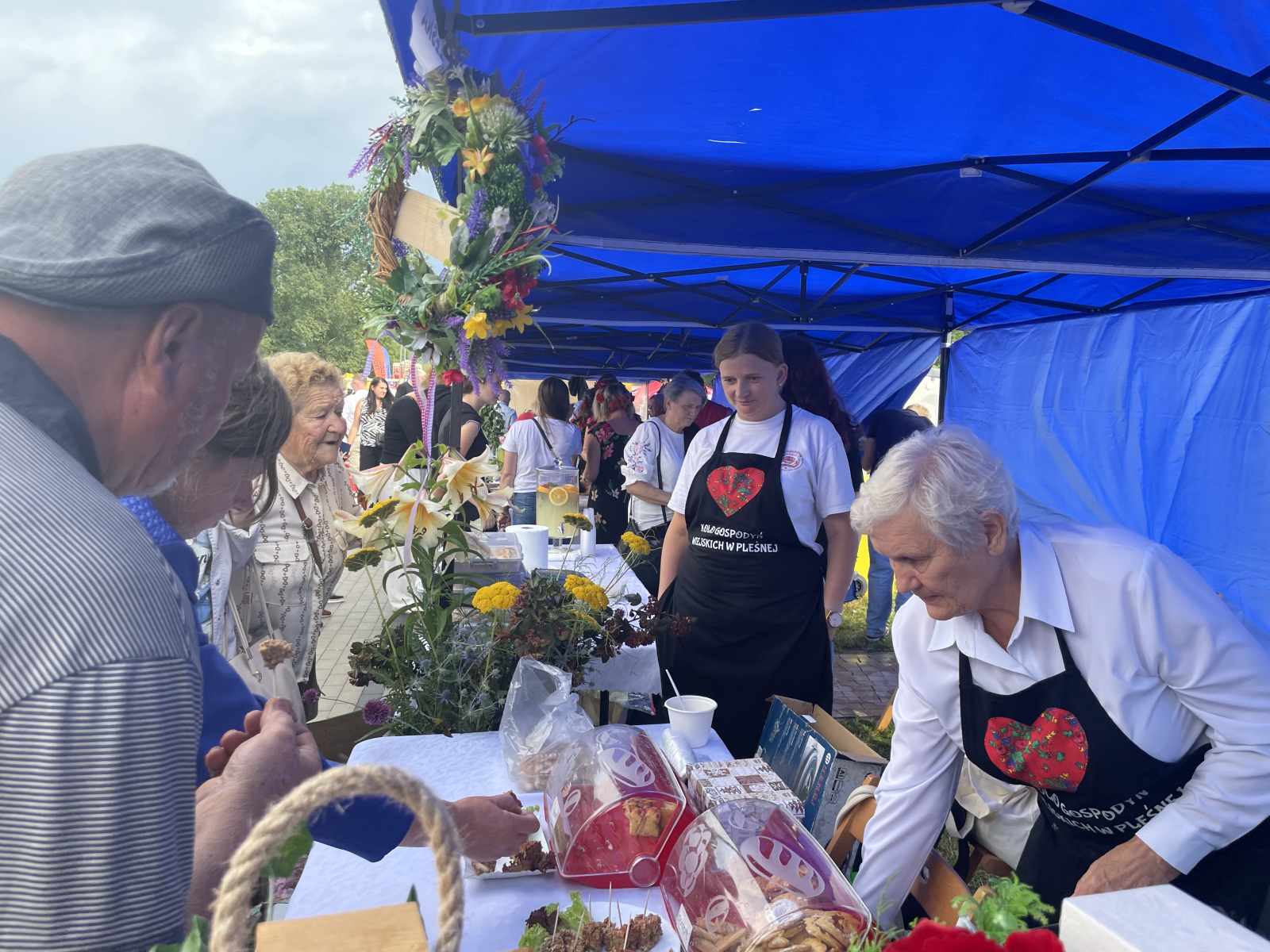 – Jest wspaniała atmosfera, tylko szkoda, że nie ma pogody. Próbowałam ciast ze Szczapanowic, kupiłam kilka wypieków z dawnych lat, skosztowałam miodu z pokrzywą. – Ciasteczka ze Świebodzina, bardzo dobre. Troszkę nas pokropiło, wyrwaliśmy się z Tarnowa, żeby regionalne produkty tu popróbować. – Troszkę zmokliśmy, ale teraz suszymy się na słoneczku, myślę, że będziemy się dobrze bawić. Pokosztować miodów, lody, są kanapki ze smalcem, pieczone ciasta rogaliki.