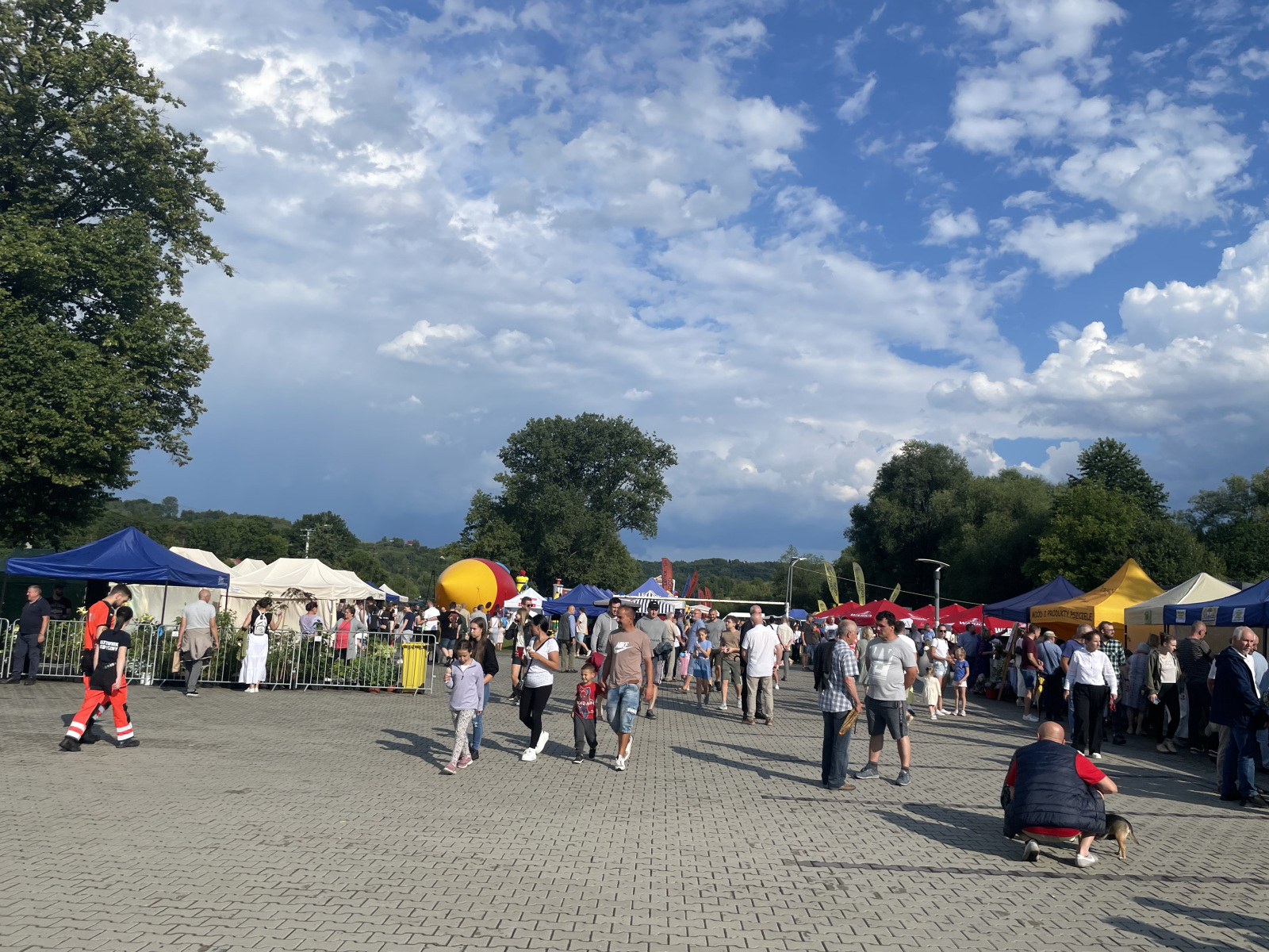 – Jest wspaniała atmosfera, tylko szkoda, że nie ma pogody. Próbowałam ciast ze Szczapanowic, kupiłam kilka wypieków z dawnych lat, skosztowałam miodu z pokrzywą. – Ciasteczka ze Świebodzina, bardzo dobre. Troszkę nas pokropiło, wyrwaliśmy się z Tarnowa, żeby regionalne produkty tu popróbować. – Troszkę zmokliśmy, ale teraz suszymy się na słoneczku, myślę, że będziemy się dobrze bawić. Pokosztować miodów, lody, są kanapki ze smalcem, pieczone ciasta rogaliki.