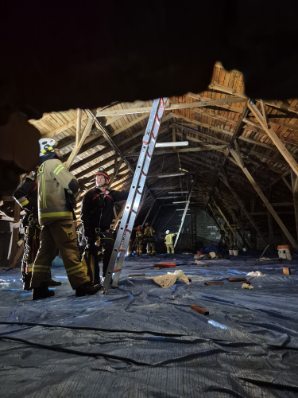 – Strażacy wychodzili na pół godziny, przychodziła kolejna burza to schodzili, za chwilę znowu wychodzili, żeby tą plandeką przykryć, a w tym czasie lało się na strop i ta część zamakała. Ludzie wynosili wiadrami wodę całą noc, otwierali sklepy, przywozili odkurzacze wodne, żeby ściągać tę wodę, bo już nie było czym. Przywieźliśmy też pompę, żeby jak najszybciej tę wodę wypompowywać, ale przemoknięcia są.