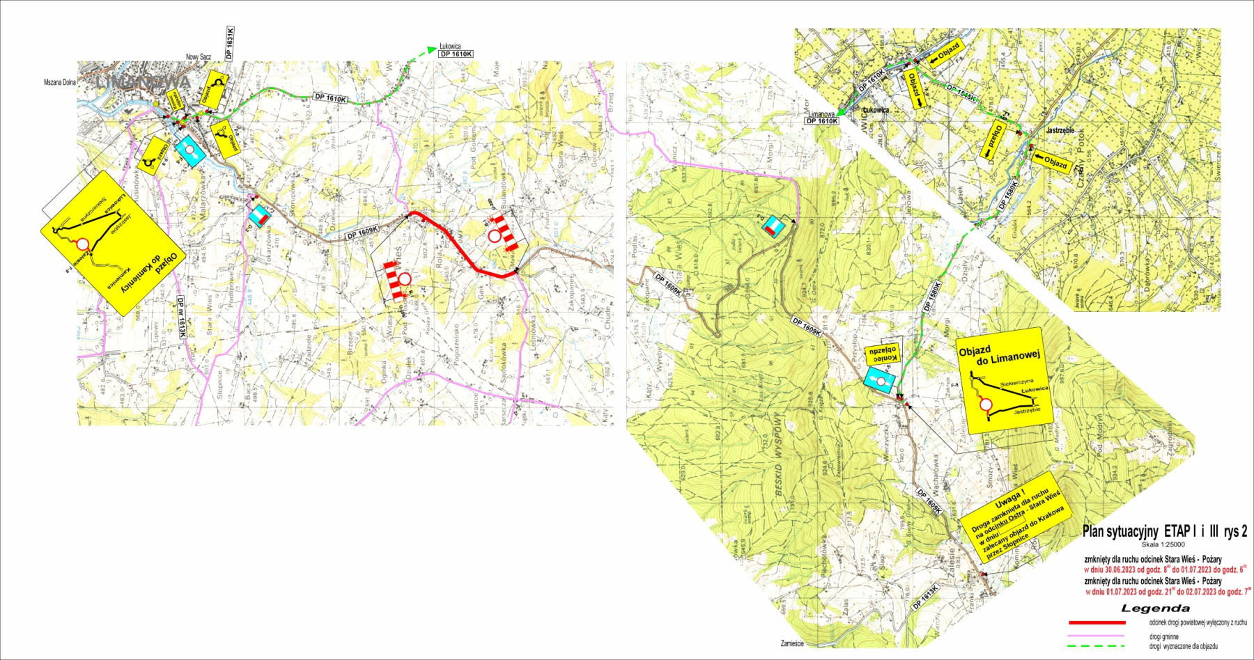Odcinek od skrzyżowania z drogą Stara Wieś – Stara Wieś Wola do skrzyżowania z drogą w kierunku Słopnic będzie zamknięty od piątkowego poranka do 21.00 oraz w sobotę od 6.00 do 21.00.