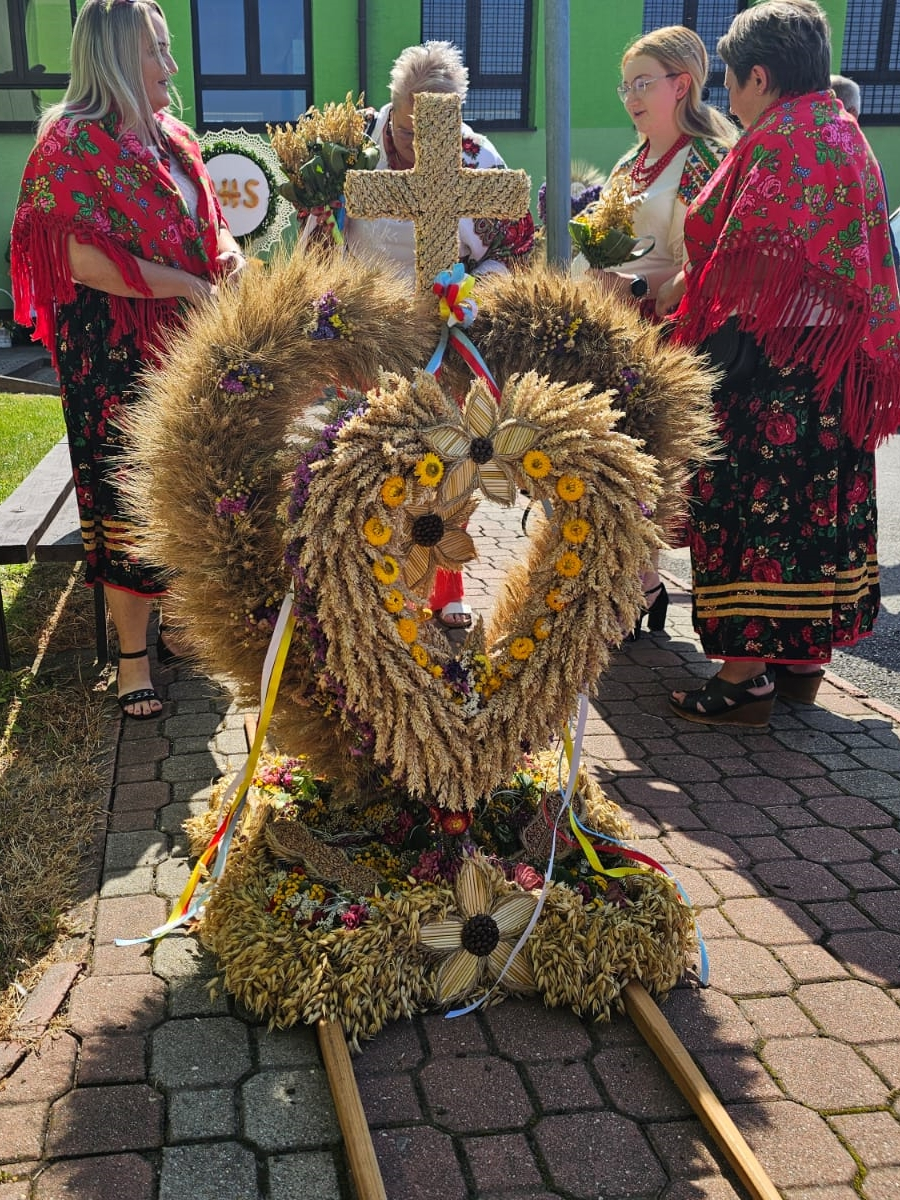 -Tego roku jesteśmy gospodarzami gminnych dożynek, dlatego postarałyśmy się o troszeczkę większy wieniec. Zajęło to dużo czasu, bo prawie tydzień wiłyśmy. Natomiast łącznie ze zbieraniem zbóż, kwiatów to były 2 tygodnie – dodaje pani Bogusława.