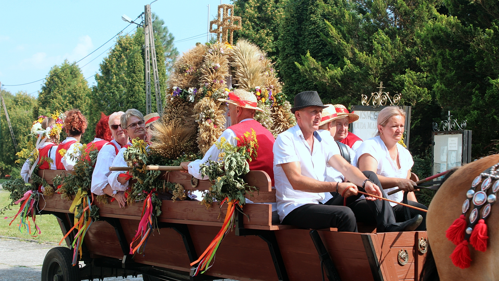Uroczystą Mszą Świętą w asyście pocztów sztandarowych Ochotniczych Straży Pożarnych rozpoczęło się tegoroczne święto plonów w gminie Gromnik. Po nabożeństwie, rolnicy i mieszkańcy gminy na przystrojonych bryczkach przejechali na teren imprezy dożynkowej.