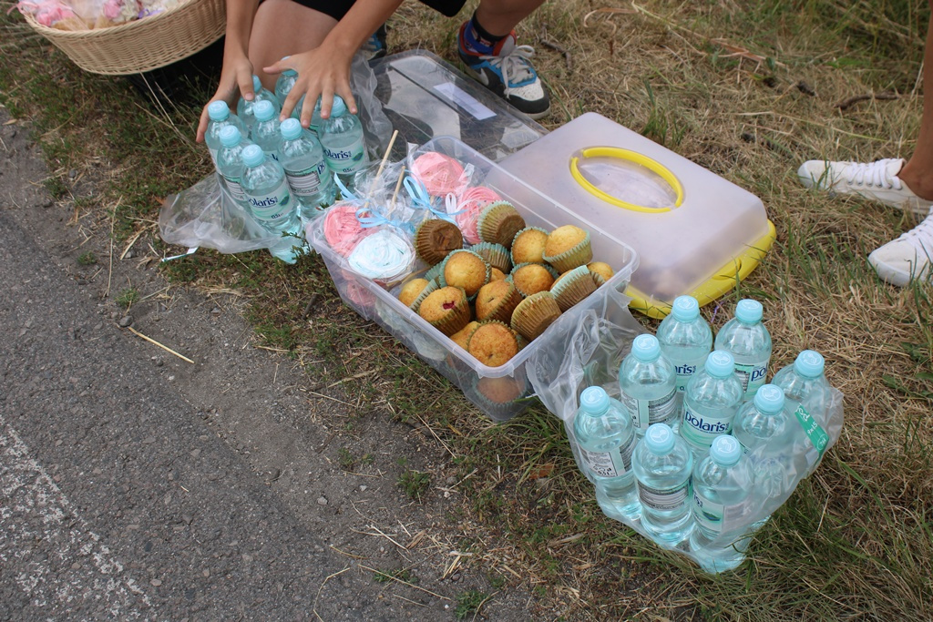 Stoiska z napojami – wodą, kawą i sokami – ale też jedzeniem można było zobaczyć przy jednym ze skrzyżowań na trasie z Okulic do Uścia Solnego.