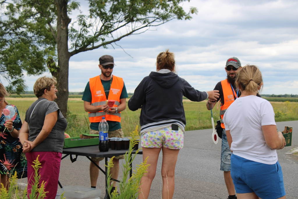 Stoiska z napojami – wodą, kawą i sokami – ale też jedzeniem można było zobaczyć przy jednym ze skrzyżowań na trasie z Okulic do Uścia Solnego.