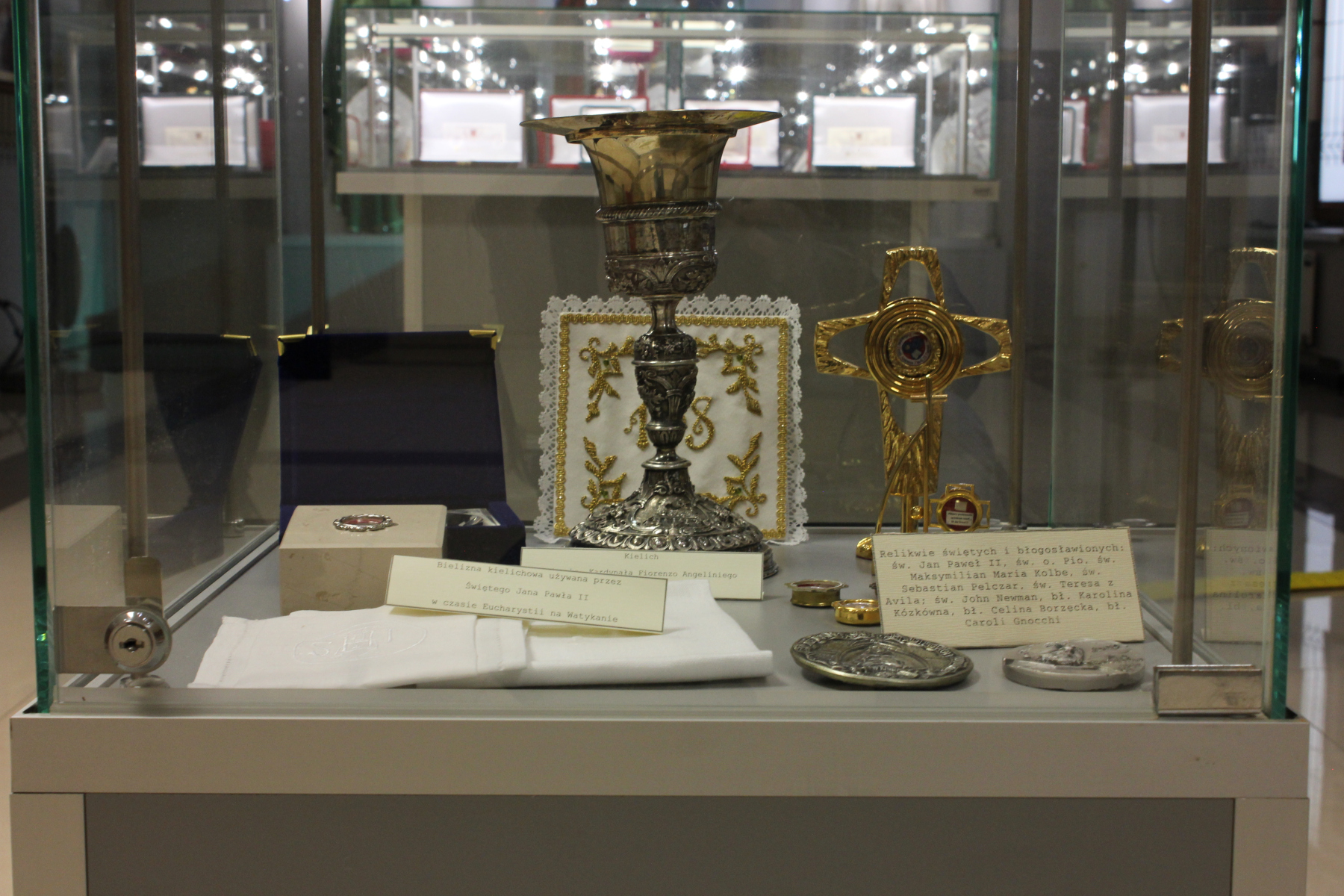 – Jest tam piuska św. Jana Pawła II, mitra której używał podczas pielgrzymki do Afryki. Są księgi liturgiczne, które były używane podczas papieskich pielgrzymek do różnych krajów. To także pamiątki związane z posługą papieża Benedykta XVI. To medale pamiątkowe, monety wybijane w Watykanie. Jest mnóstwo zdjęć przedstawiających posługę duszpasterską abpa Zygmunta Zimowskiego, a także jego brewiarze, szaty liturgiczne, sutanny