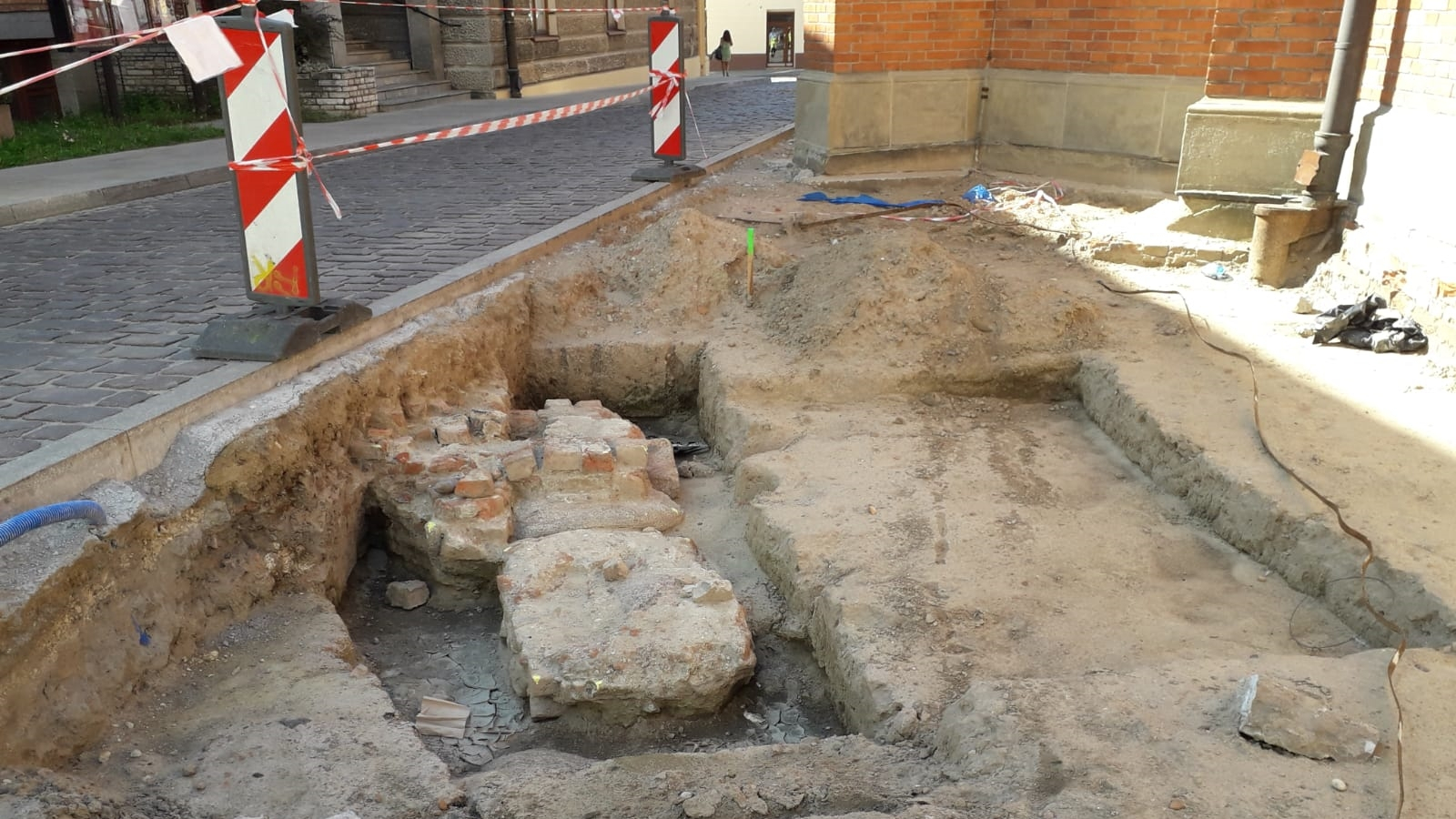 – To fragmenty muru kamienno-ceglanego. Mur ograniczał teren godny pochówku ludzi blisko kościoła. Fundamenty był solidny i mur też musiał być wysoki.