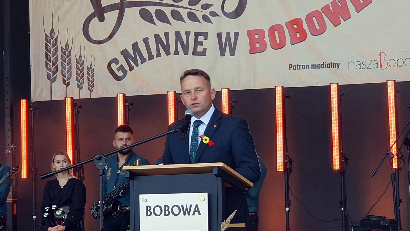 Burmistrz Bobowej Marcin Wąs mówił, że pogoda nieco utrudniała pracę, ale plony udało się zebrać szczęśliwie.