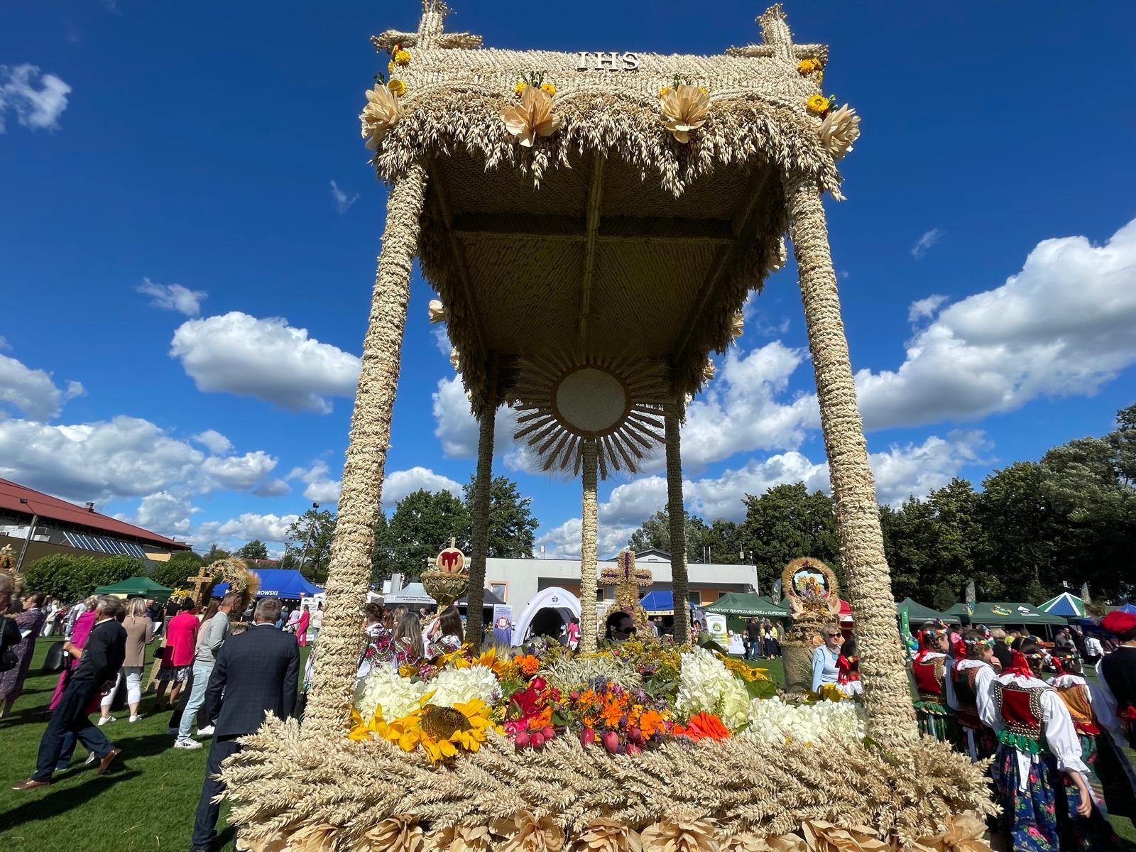 – Dużo pracy włożonej, podziwiam wieniec, który jest  w kształcie serca, krzyż zrobiony ze zbóż, są róże, jest bardzo dużo drobnych detali.