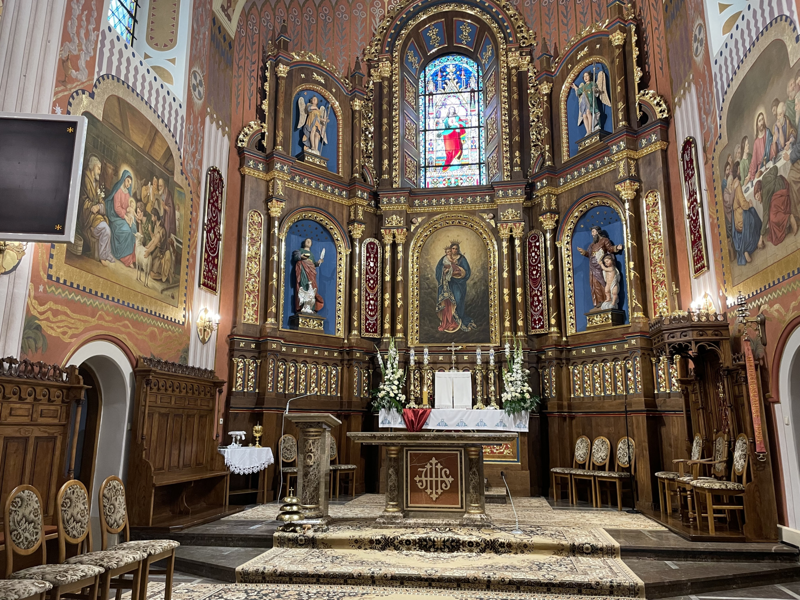 – Jest wspaniałym zabytkowym kościołem, bardzo ważnym dla naszej historii Polski. Rzuca się w oczy potężna ściana ołtarzowa, czyli dawno ołtarz, a obecnie są już nowe ołtarze posoborowe, natomiast to kiedyś były ołtarze główne –