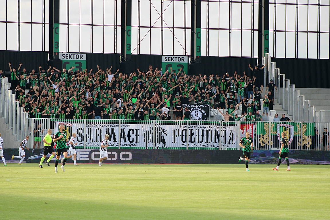Żółte kartki: Radecki, Furtak, Hrnciar, Łącki (Stal).