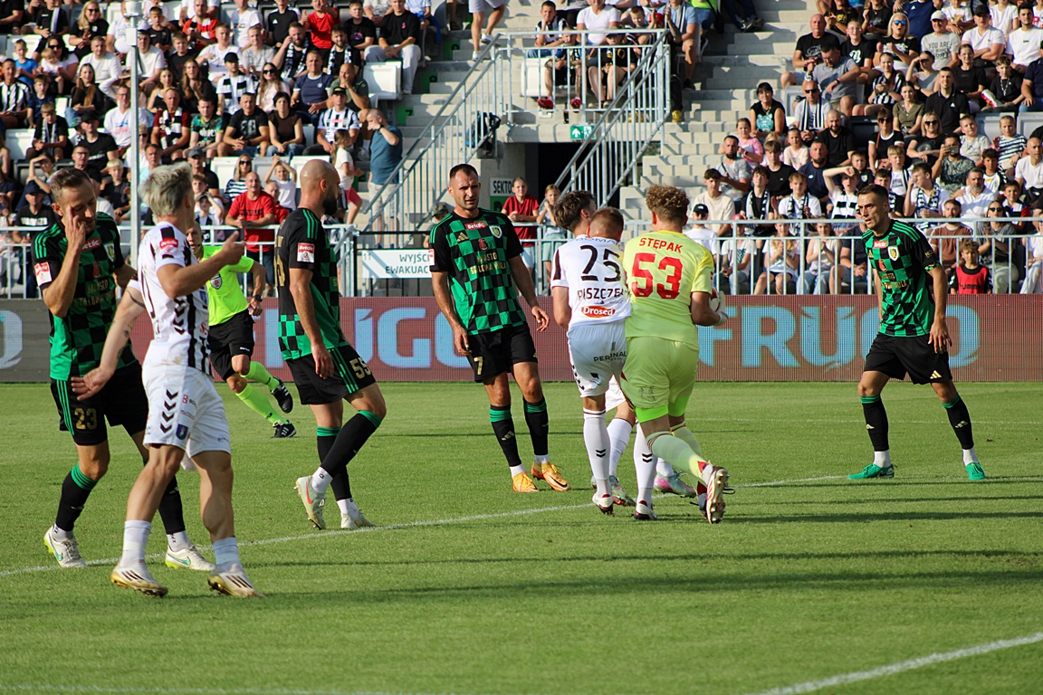 Sandecja rozpoczęła świetnie i już w 4. minucie objęła prowadzenie. Daniel Pietraszkiewicz podał w pole karne, piłkę strącił jeszcze Kacper Ćwielong, a Filip Piszczek trafił do siatki.