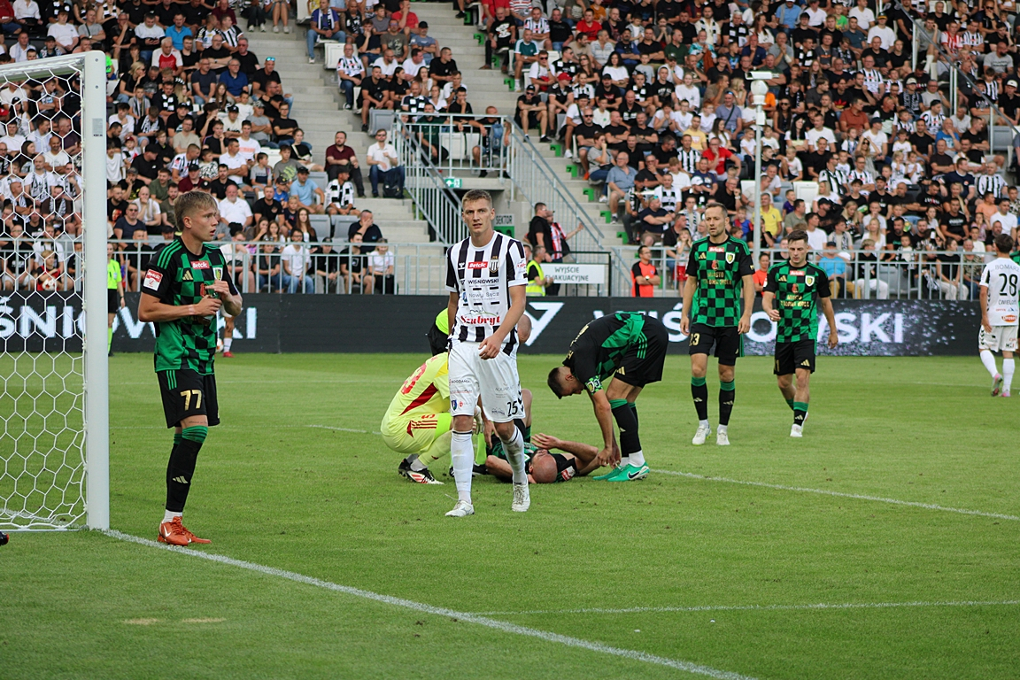 Sandecja rozpoczęła świetnie i już w 4. minucie objęła prowadzenie. Daniel Pietraszkiewicz podał w pole karne, piłkę strącił jeszcze Kacper Ćwielong, a Filip Piszczek trafił do siatki.
