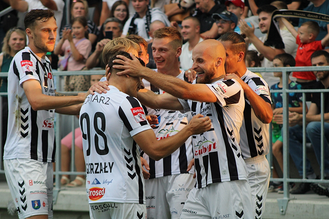 Sandecja rozpoczęła świetnie i już w 4. minucie objęła prowadzenie. Daniel Pietraszkiewicz podał w pole karne, piłkę strącił jeszcze Kacper Ćwielong, a Filip Piszczek trafił do siatki.