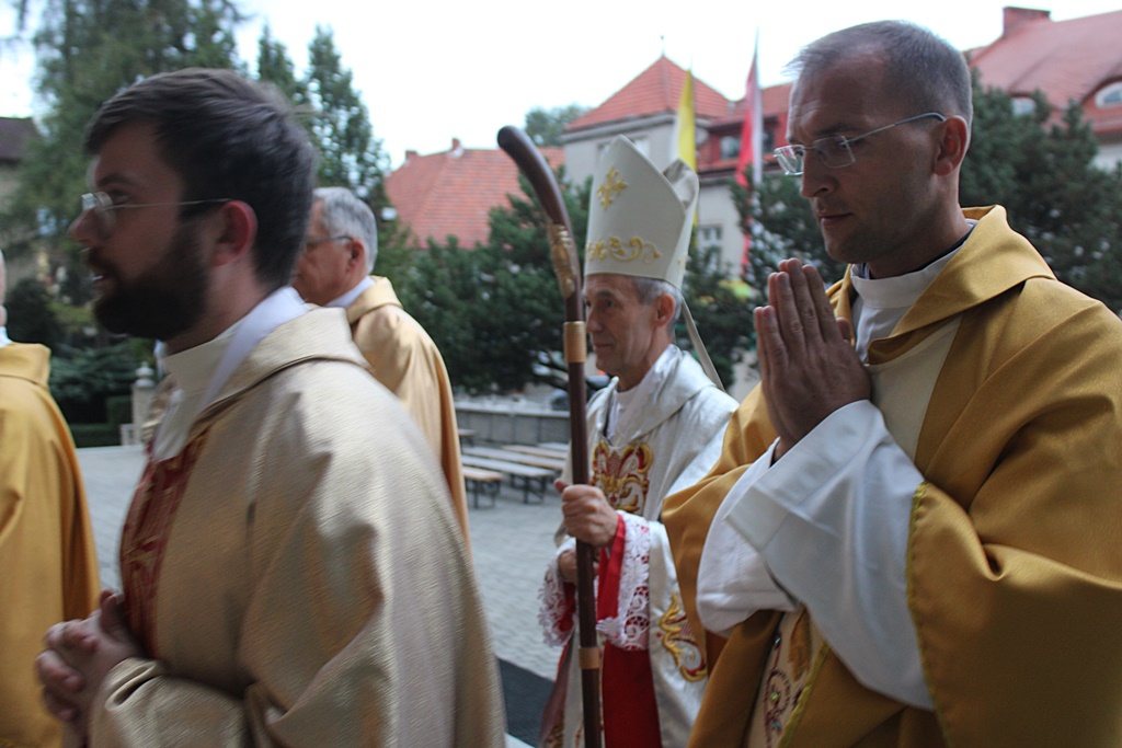 Uroczystość rozpoczęło wprowadzanie ks. Janusza Faltyna, a następnie powitanie przez kustosza i proboszcza ks. Wiesława Piotrowskiego. Później odmówiono modlitwę różańcową, po której Eucharystię odprawił ks. biskup Stanisław Salaterski.