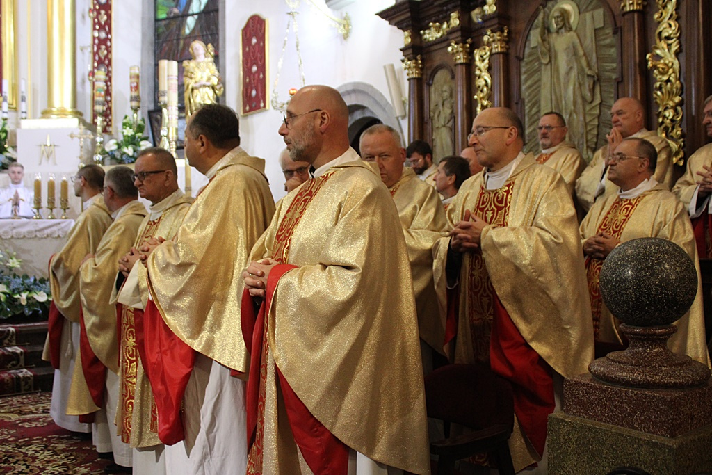 Uroczystość rozpoczęło wprowadzanie ks. Janusza Faltyna, a następnie powitanie przez kustosza i proboszcza ks. Wiesława Piotrowskiego. Później odmówiono modlitwę różańcową, po której Eucharystię odprawił ks. biskup Stanisław Salaterski.