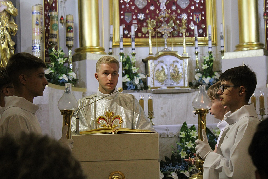 Uroczystość rozpoczęło wprowadzanie ks. Janusza Faltyna, a następnie powitanie przez kustosza i proboszcza ks. Wiesława Piotrowskiego. Później odmówiono modlitwę różańcową, po której Eucharystię odprawił ks. biskup Stanisław Salaterski.