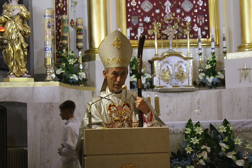 Uroczystość rozpoczęło wprowadzanie ks. Janusza Faltyna, a następnie powitanie przez kustosza i proboszcza ks. Wiesława Piotrowskiego. Później odmówiono modlitwę różańcową, po której Eucharystię odprawił ks. biskup Stanisław Salaterski.