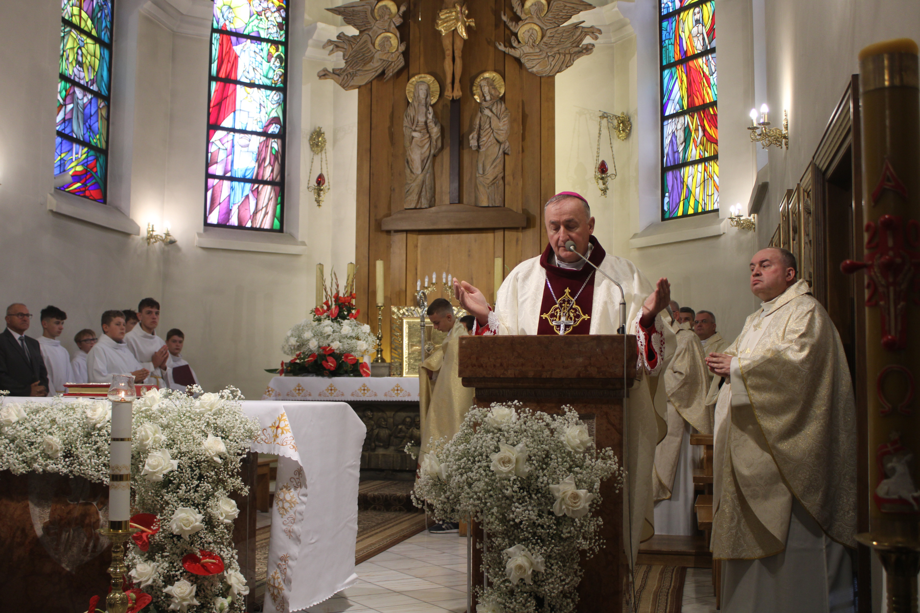 Parafię pw. Podwyższenia Krzyża w Iwkowej prowadzi proboszcz ks. Marek Bach. Na Mszy świętej jubileuszowej obecny był także jego poprzednik, ks. Józef Gurgul.