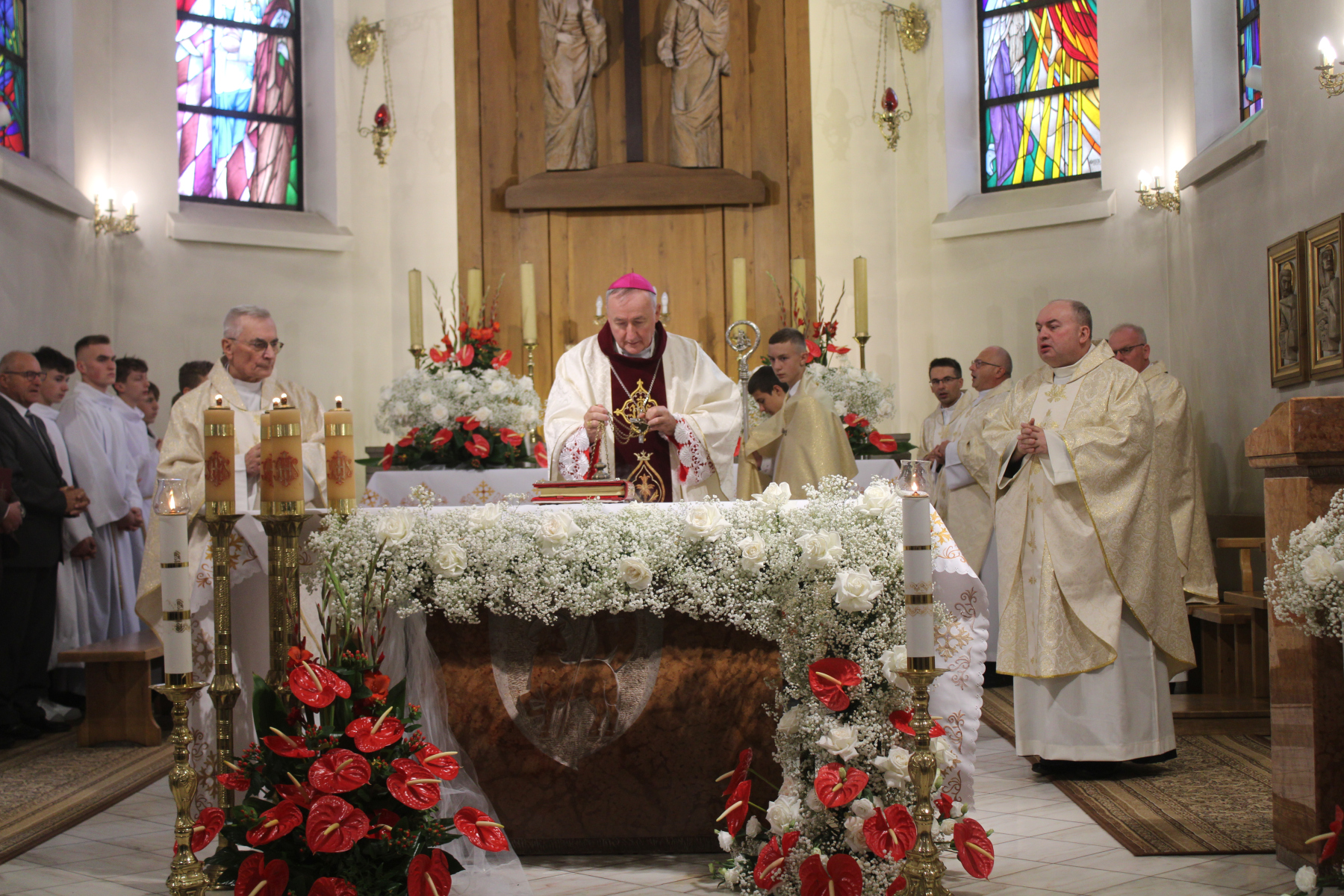Parafię pw. Podwyższenia Krzyża w Iwkowej prowadzi proboszcz ks. Marek Bach. Na Mszy świętej jubileuszowej obecny był także jego poprzednik, ks. Józef Gurgul.