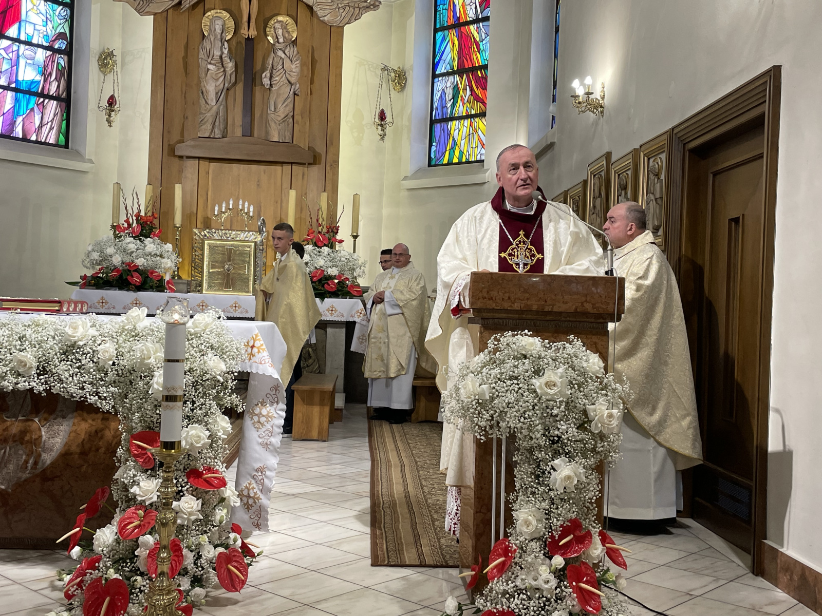 Parafię pw. Podwyższenia Krzyża w Iwkowej prowadzi proboszcz ks. Marek Bach. Na Mszy świętej jubileuszowej obecny był także jego poprzednik, ks. Józef Gurgul.