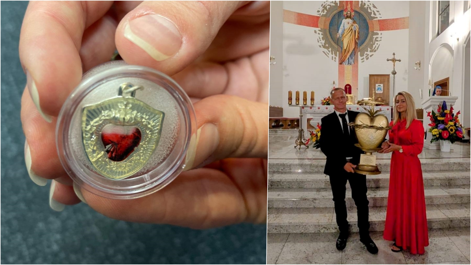 – Nasza historia zaczyna się 7 lat temu, kiedy mój mąż w ciężkim stanie trafił do szpitala. Miał przechodzone zapalenie płuc, z którego zrobił się ropień opłucnej. Mąż spędził w szpitalu kilka miesięcy. Kiedy jego stan był bardzo ciężki i lekarze nie dawali mu szans na przeżycie, ja bardzo mocno modliłam się o cud uzdrowienia. Mój mąż został uzdrowiony przez Najświętsze Serce Pana Jezusa. Dzięki temu uzdrowieniu zaczęliśmy szerzyć kult do Najświętszego Serca Pana Jezusa i przyjęcie tarczy –