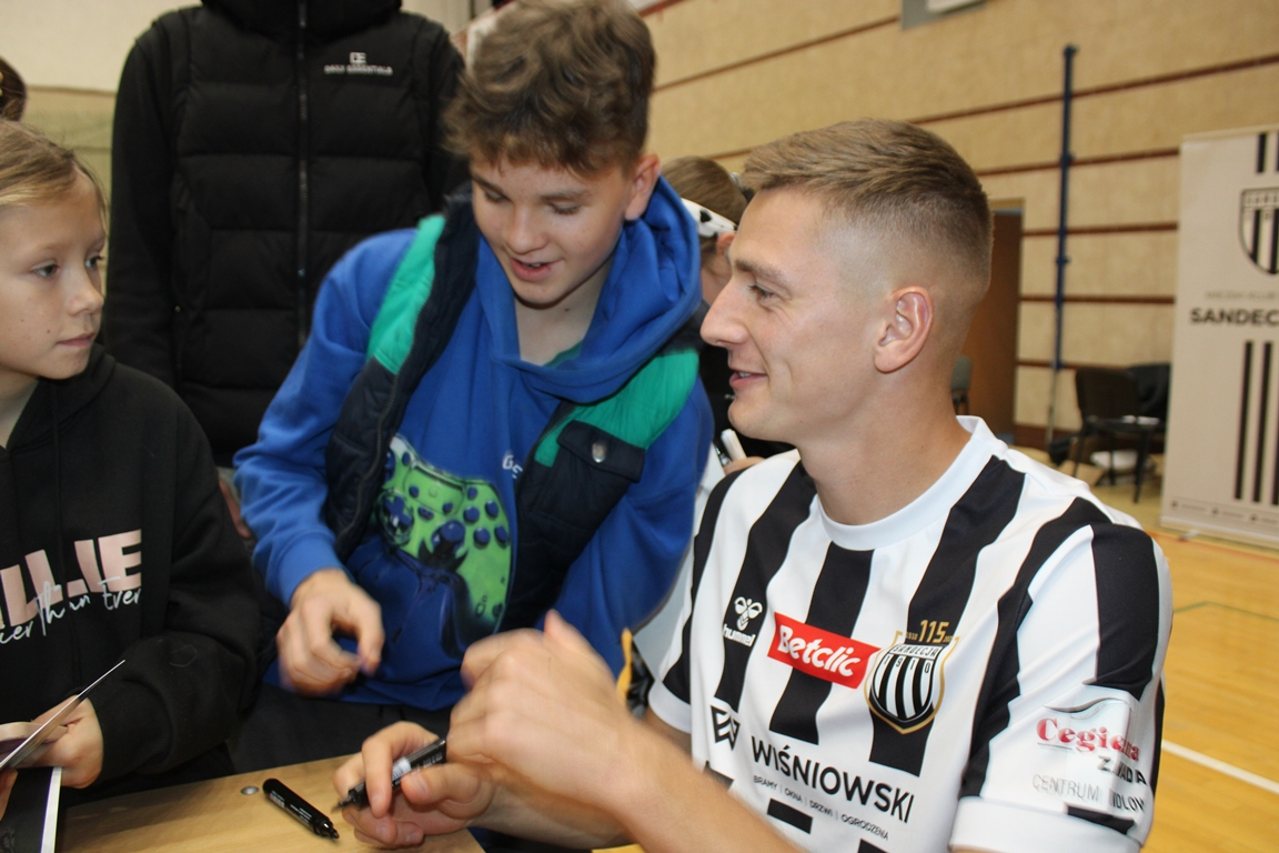 To była wyjątkowa okazja, by zobaczyć z bliska piłkarzy 2 zaprzyjaźnionych klubów, w tym wybitnego reprezentanta Polski. Kamil Glik i Michał Malinowski z Cracovii oraz Filip Piszczek i Kamil Ogorzały z Sandecji spotkali się w Nowym Sączu z młodymi kibicami piłki nożnej.