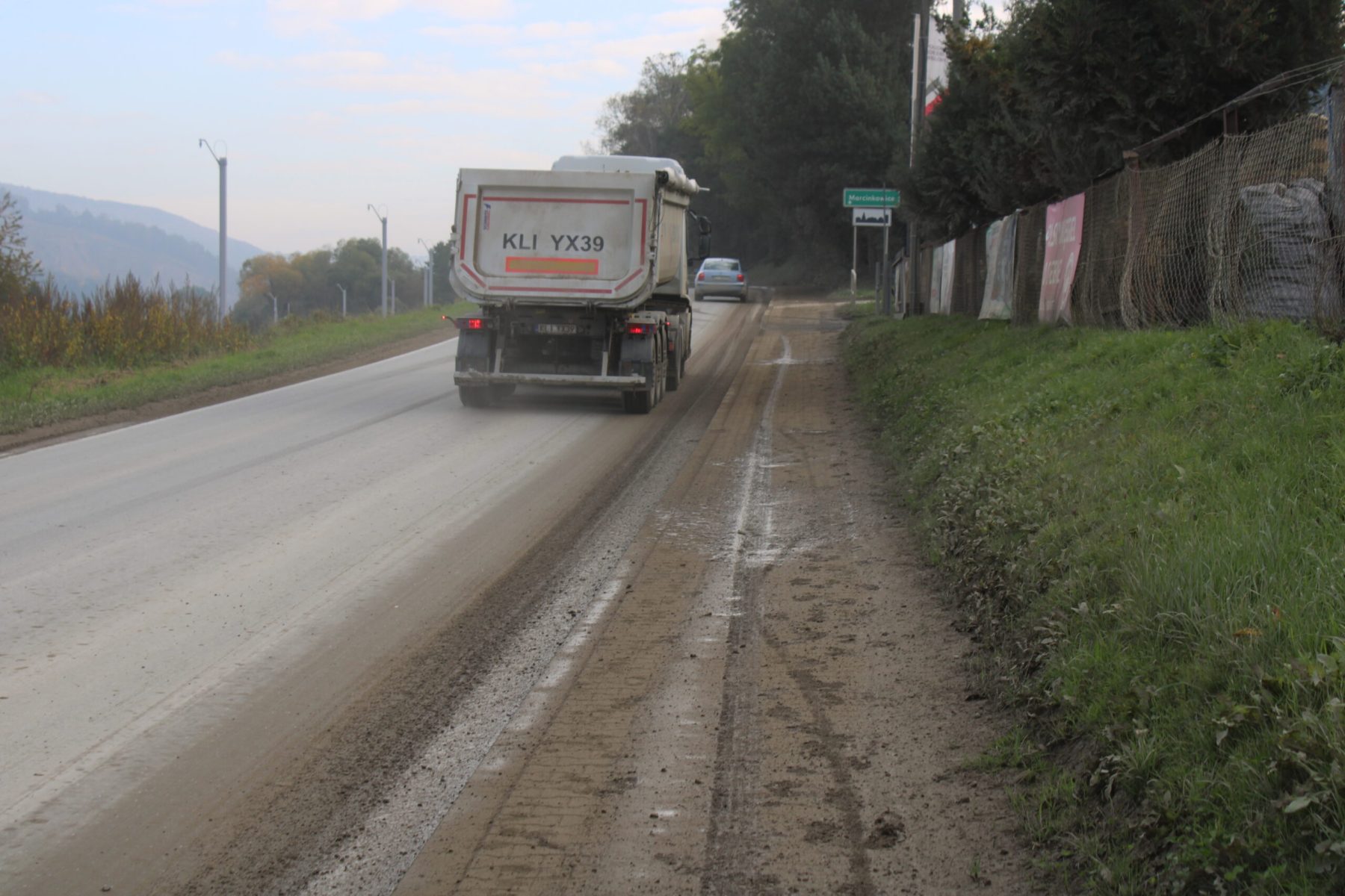 Zabłocone samochody, ale też buty i nogawki spodni. Prowadzącą przez gminę Chełmiec drogą powiatową od dłuższego czasu trudno normalnie przejechać. Oprócz kierowców problem mają też piesi, którzy na chodniku muszą maszerować w ciemnej brei. Powodem jest błoto rozprowadzane przez koła ciężarówek pracujących między innymi przy budowie nowej linii kolejowej.