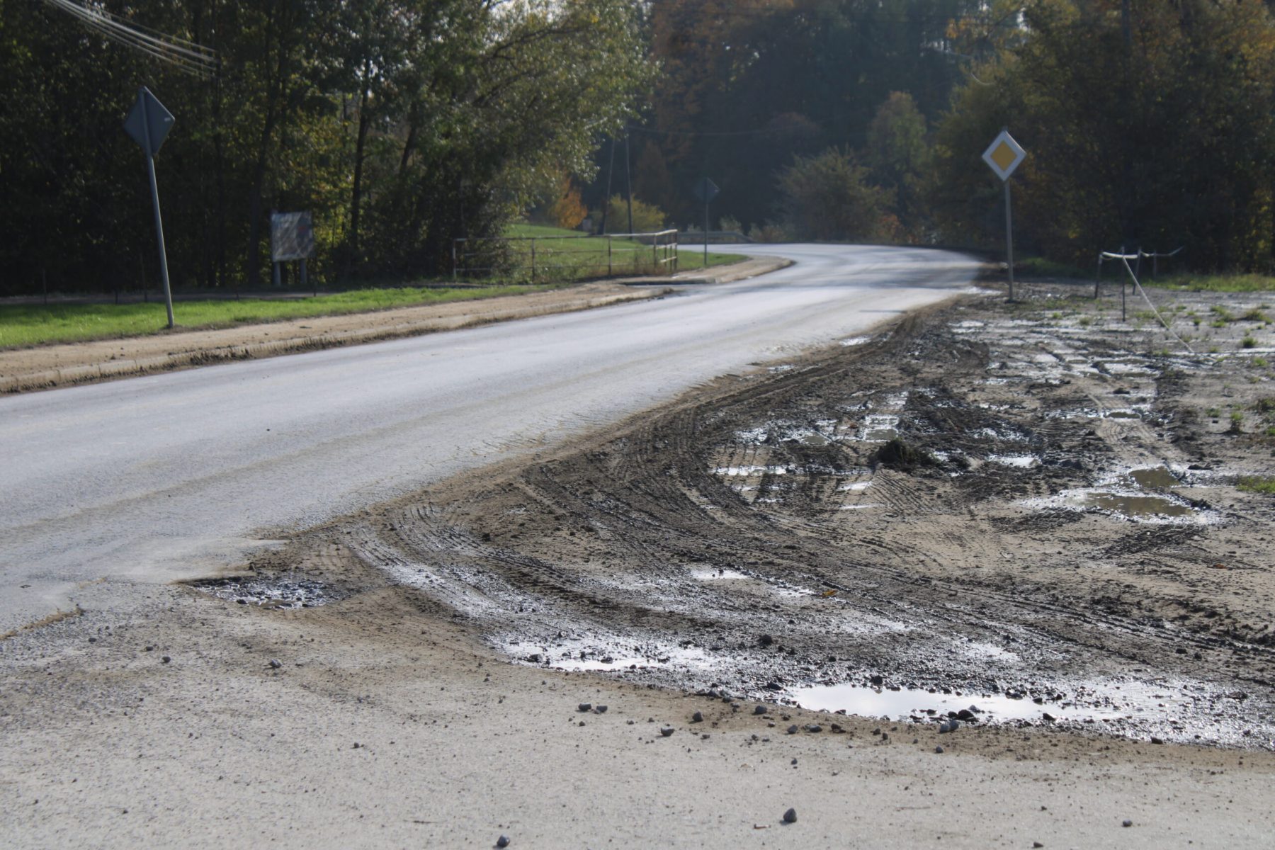 Błoto na jezdni i chodnikach. Stan drogi powiatowej z Chełmca do Limanowej coraz bardziej uciążliwy [ZDJĘCIA]