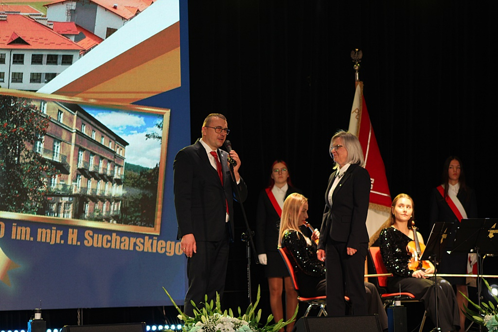 Uczestnicy uroczystości na potwierdzenie tego, co mówią odsłonili pamiątkowy obelisk, upamiętniający swojego patrona przed wejściem do szkoły. Jubileuszowa gala miała natomiast miejsce w krynickiej Pijalni Głównej. Obecny na niej między innymi burmistrz Krynicy-Zdroju Piotr Ryba, gratulując zebranym wyjątkowego czasu, wspomniał też o obecnej rzeczywistości, w której Zespół Szkół funkcjonuje. Są też nowe wyzwania.