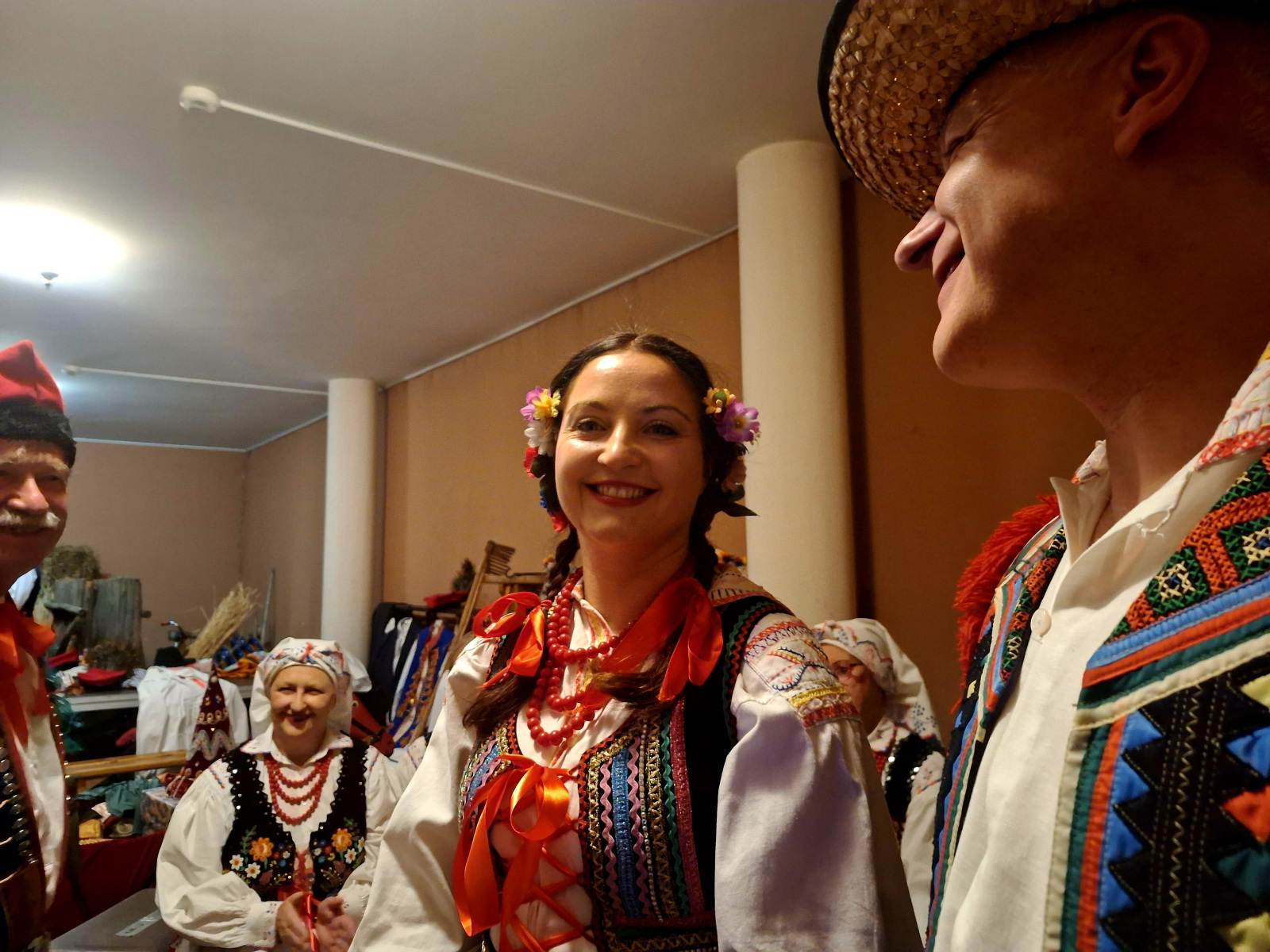 – Ja mam na sobie strój lubelski. Składa się on ze spódnicy i gorsetu. Wianek wygląda tu troszeczkę inaczej, bo jest przypięty od tyłu. Charakterystyczne są również korale, dwa warkocze, buty i białe rajstopy – dodaje Aleksandra Więcek.