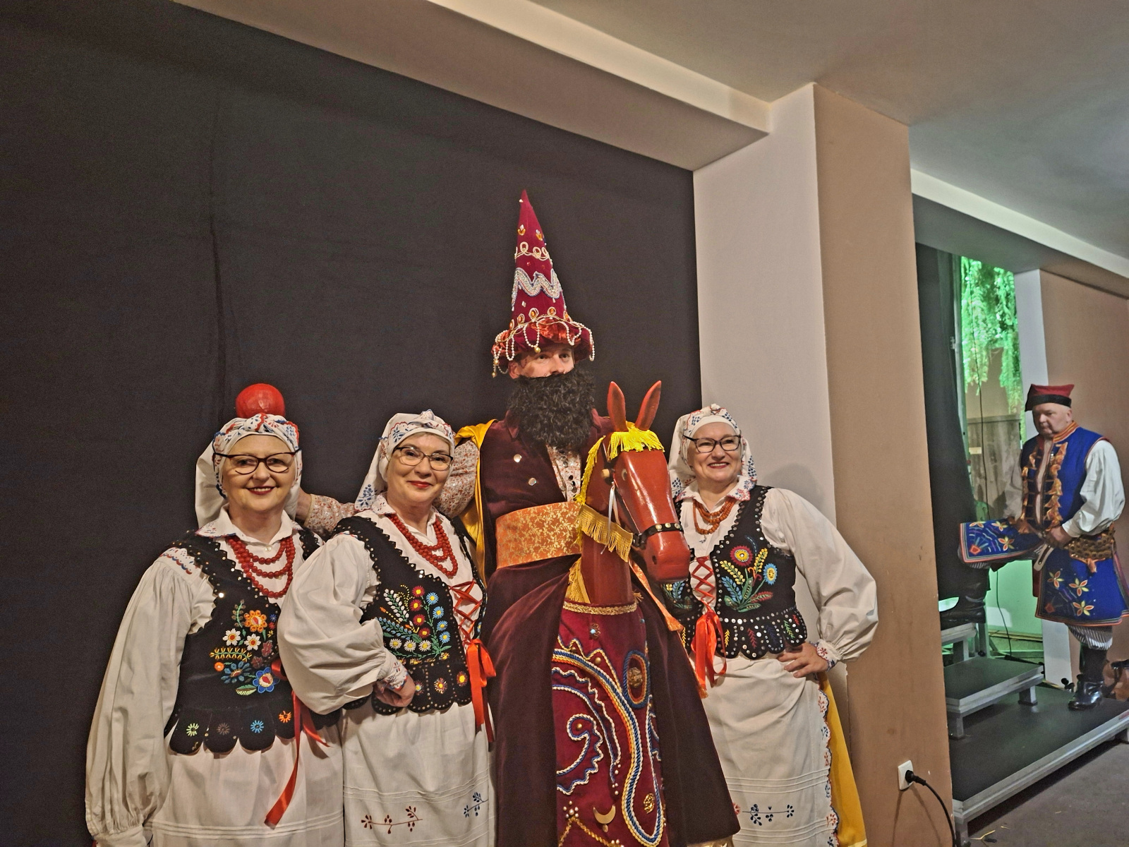 – Ja mam na sobie strój z regionu rzeszowskiego w kolorze niebieskim. Na spodniach są czerwone elementy, a katana jest przyozdobiona pomponikami – mówi Jerzy Sikora.