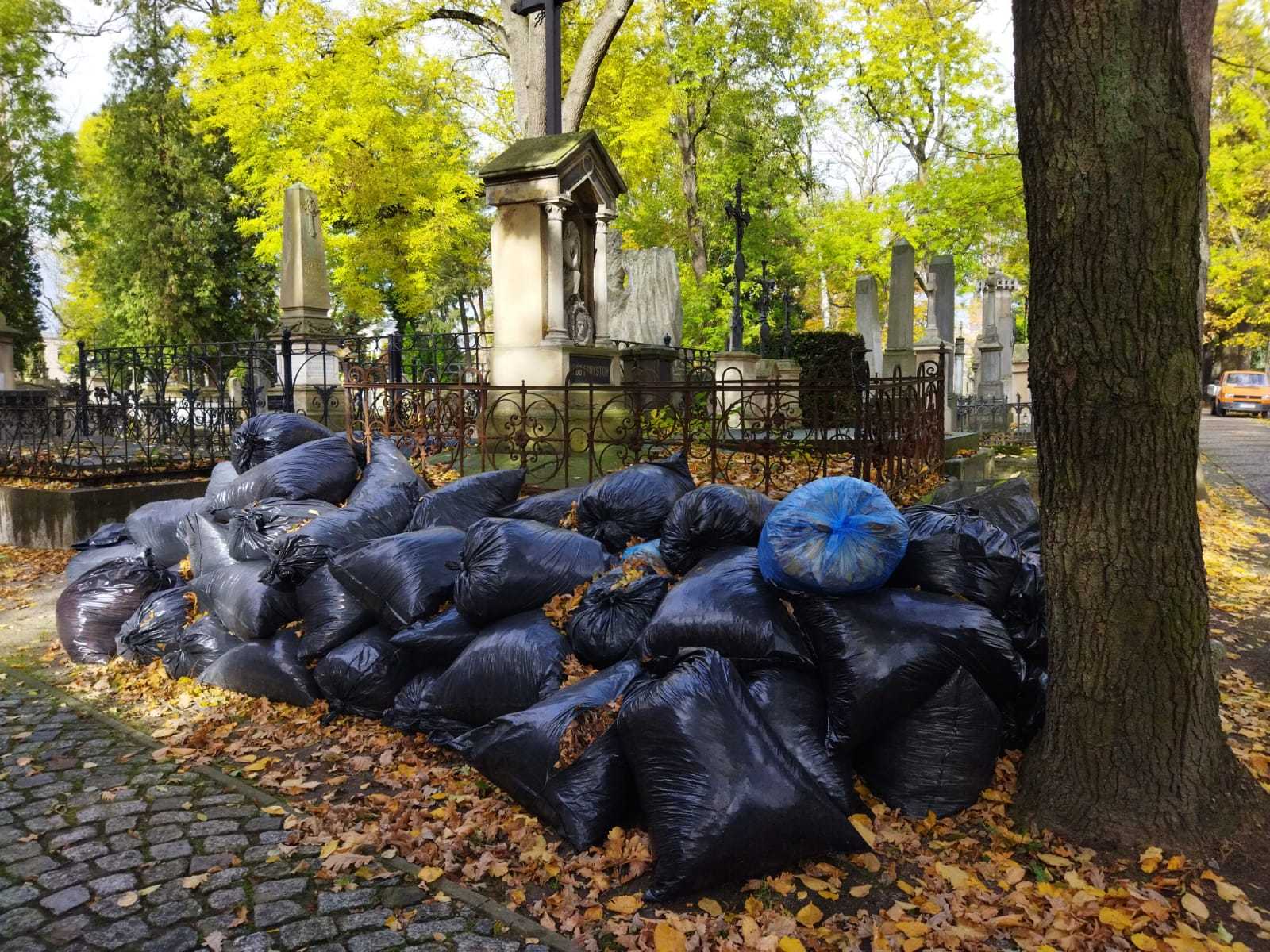 – Dziś zebraliśmy 128 worków. Bardzo dużo liści. Trochę padało, więc są mokre liście i przez to worki zrobiły się ciężkie – dodaje Michał.