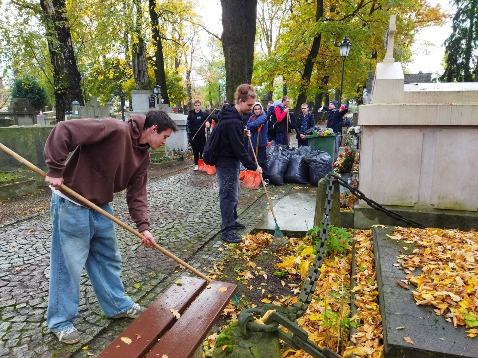 Młodzież pomaga w sprzątaniu grobów na Starym Cmentarzu w Tarnowie