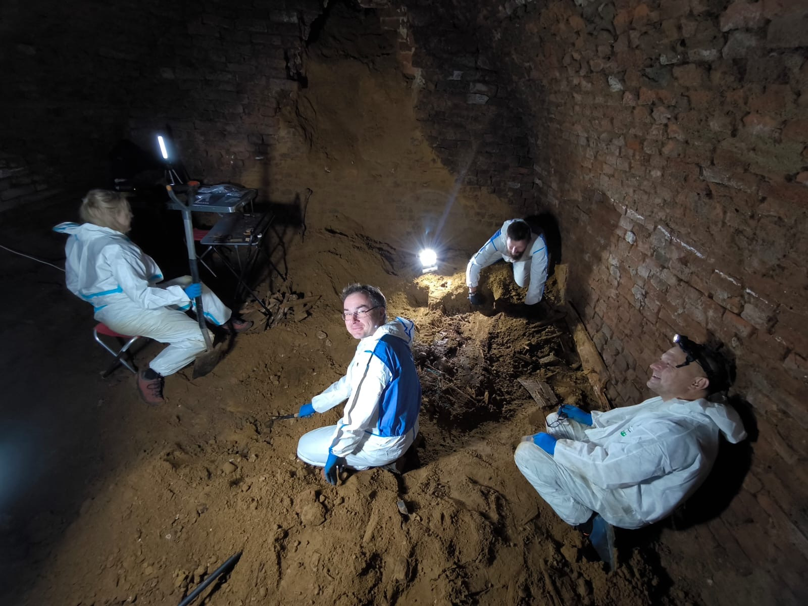 – Wyjątkową rzeczą było to, że znaleźliśmy kryptę w krypcie, tak jakby kryptę drugiego poziomu. Tę kryptę odkryliśmy nocą, było to dla nas bardzo tajemnicze, zaczęło nam coś stukać pod łopatą. To nie jest duże pomieszczenie. Prawdopodobnie była to krypta, może na jeden, może na dwa pochówki. Teraz jest ona wypełniona kośćmi, teraz jest z niej zrobione ossuarium