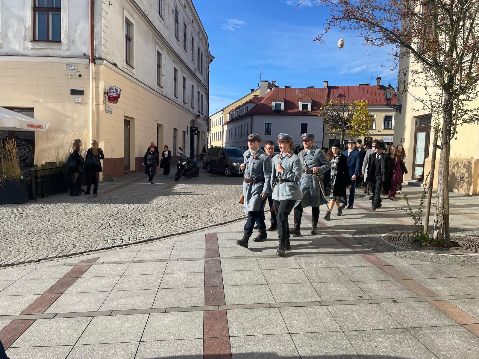– Chcę pokazać, jak kiedyś wyglądali ludzie, jak się prezentowali, jak się ubierali. – Wychodzimy w takich strojach szczególnie po to, żeby pokazać ludziom, że historia jest ważna, że jest obecna. Nasz Tarnów był pierwszy niepodległy, więc przebieramy się w stroję z tamtych czasów i chcemy pokazać, ze nasz naród jest silny i żeby ludzie pamiętali, co się wtedy działo – dodają Hubert i Wiktoria z XVI LO w Tarnowie.