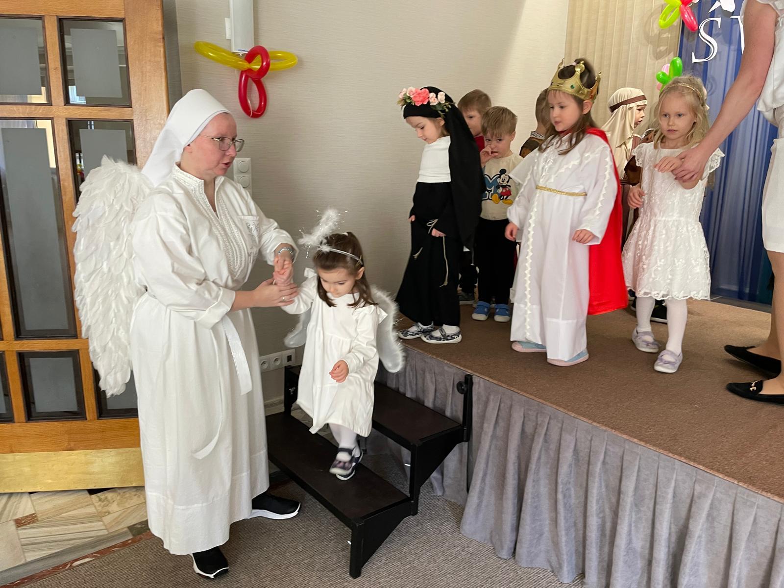 – To jest Anioł Stróż siostry Klary, ponieważ siostra Klara jest bardzo szybka, musi wiele spraw załatwiać i Anioł Stróż nad nią czuwa. Bal Świętych to jest chrześcijański aspekt świętowania, zamiast duchów i mrocznych strachów, pokazujemy dzieciom, że można pięknie świętować dobro, poznawać życie świętych i uczyć się od nich, jak dążyć do świętości. Jest to też edukacja religijna w formie zabawy, a przede wszystkim przeciwdziałanie takiej masowej kulturze. W wielu krajach jest obchodzone Halloween, pokazywane w ujęciu rozrywkowym, my pokazujemy natomiast, że możemy być wdzięczni za życie świętych.