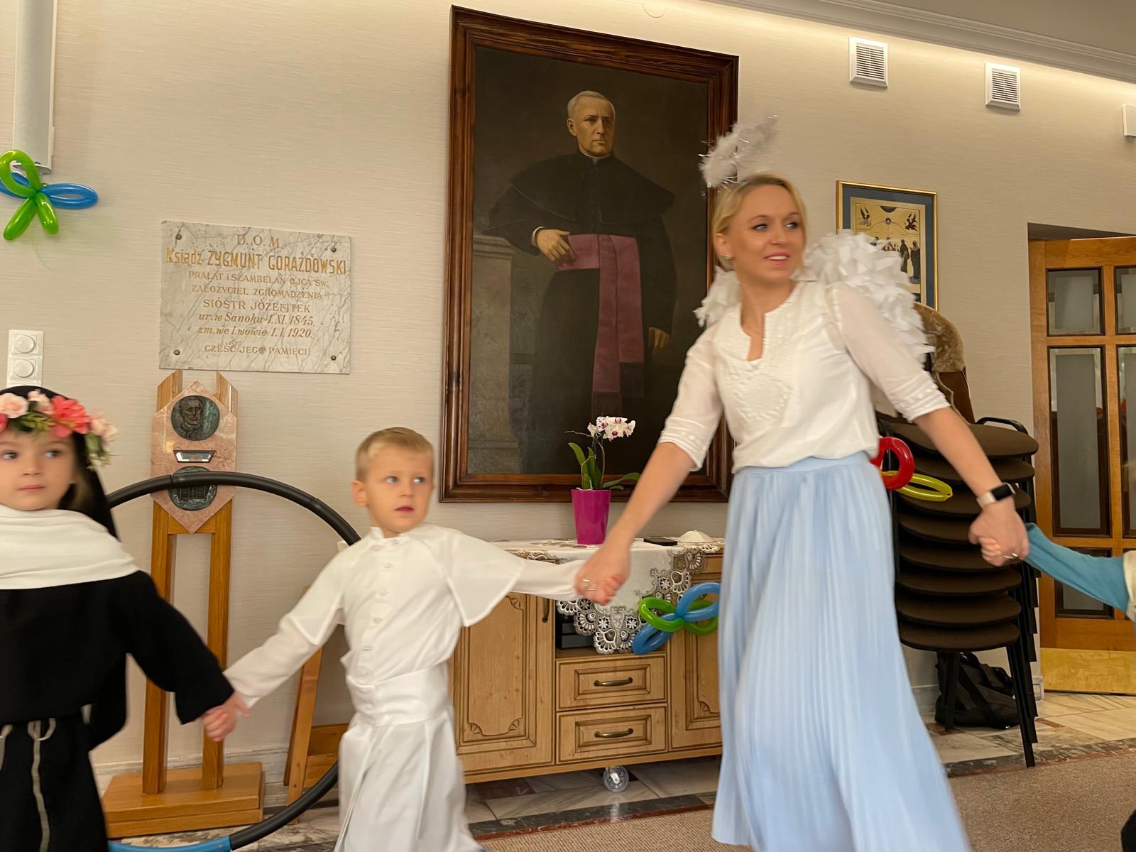 – To jest Anioł Stróż siostry Klary, ponieważ siostra Klara jest bardzo szybka, musi wiele spraw załatwiać i Anioł Stróż nad nią czuwa. Bal Świętych to jest chrześcijański aspekt świętowania, zamiast duchów i mrocznych strachów, pokazujemy dzieciom, że można pięknie świętować dobro, poznawać życie świętych i uczyć się od nich, jak dążyć do świętości. Jest to też edukacja religijna w formie zabawy, a przede wszystkim przeciwdziałanie takiej masowej kulturze. W wielu krajach jest obchodzone Halloween, pokazywane w ujęciu rozrywkowym, my pokazujemy natomiast, że możemy być wdzięczni za życie świętych.