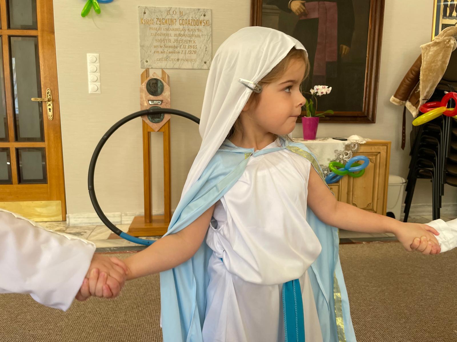 – Przebrałam się za Aniołka, mam skrzydła i aureolkę. Anioł lata i patrzy na nas.