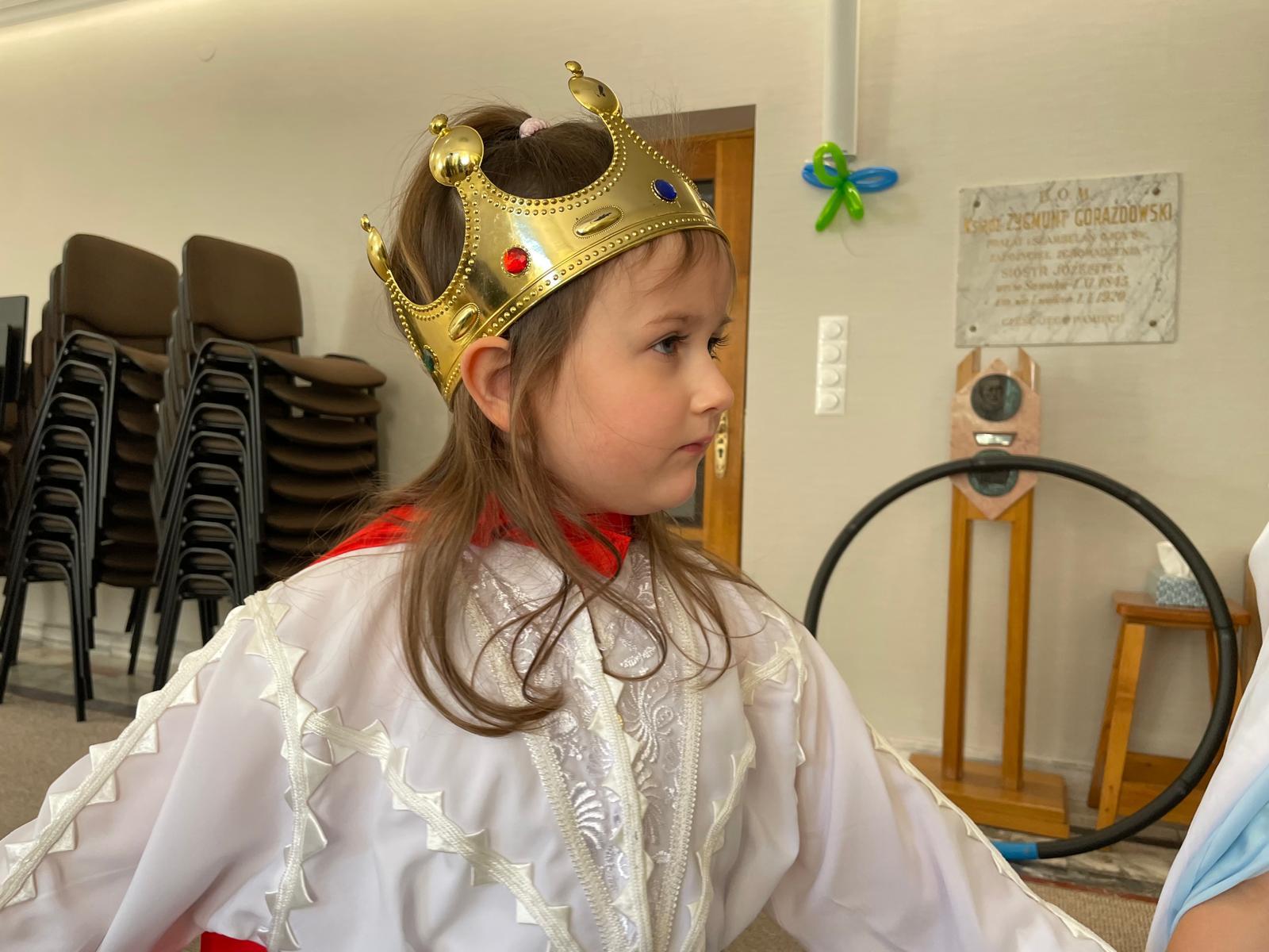 – Ja jestem św. Jadwigą. Mam na sobie niebieską sukienkę z cekinami.