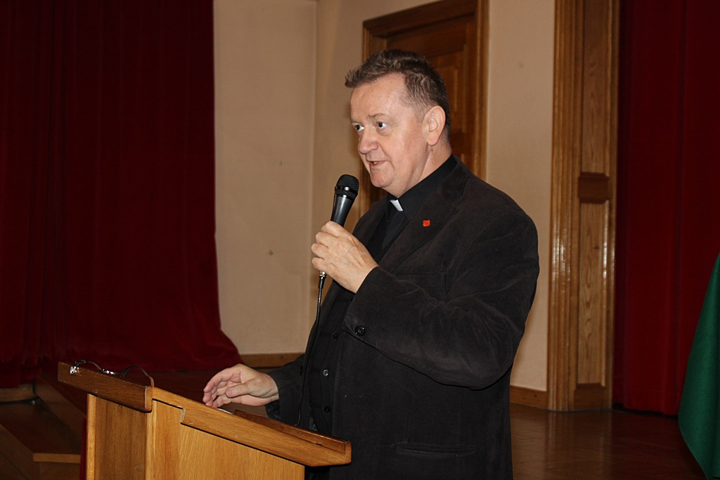 Wykładowcą był ks. prof Janusz Królikowski, który nie owijał w bawełnę. Jak powiedział, dzisiejszy świat wymyśla własny system wartości, który jest sprzeczny z Dekalogiem, czy prawem naturalnym i chce nam go narzucić.
