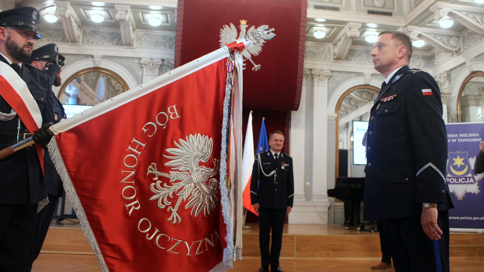 Objęcie obowiązków komendanta odbyło się w uroczystej atmosferze – w Sali Lustrzanej, w obecności małopolskiego komendanta wojewódzkiego, komendantów innych służb mundurowych, samorządowców oraz oficerów policji.