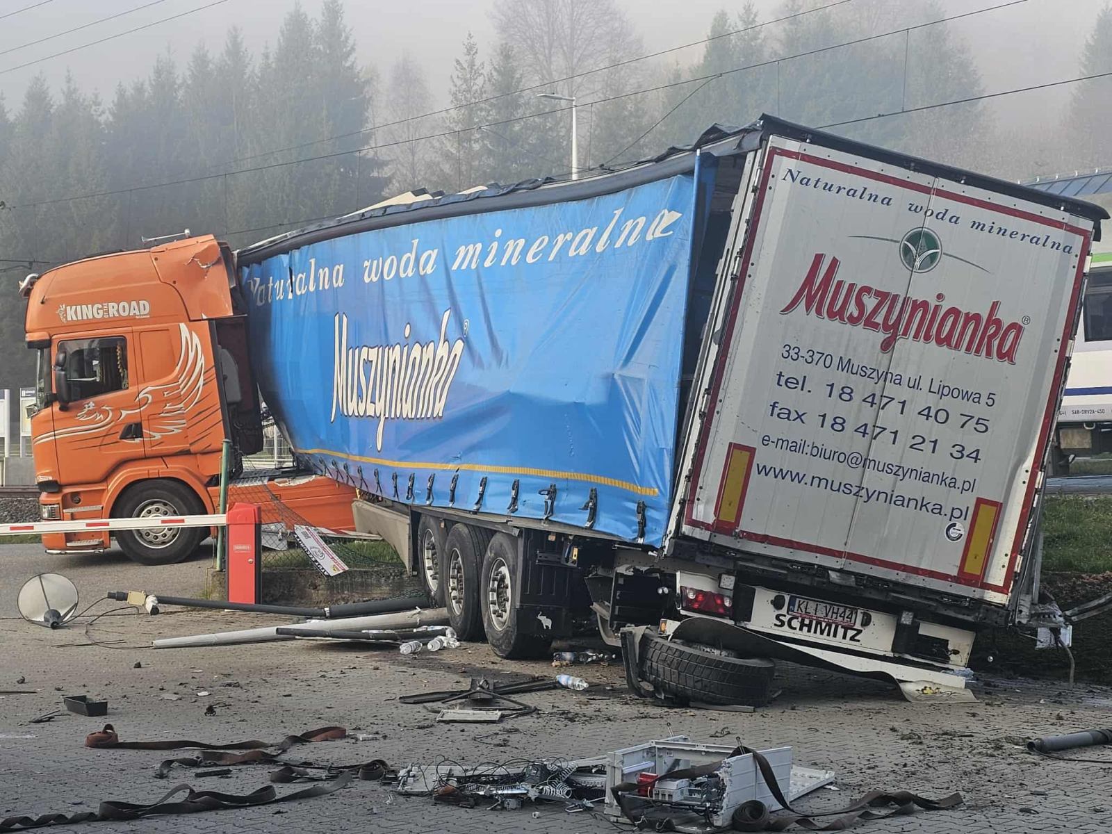 Jak podają sądeccy strażacy, chodzi o pociąg relacji Gdynia Główna – Krynica-Zdrój. Skład wjechał w tył naczepy tira. W wyniku zderzenia uszkodzone zostały dwa inne samochody osobowe, które nie uczestniczyły bezpośrednio w zderzeniu.