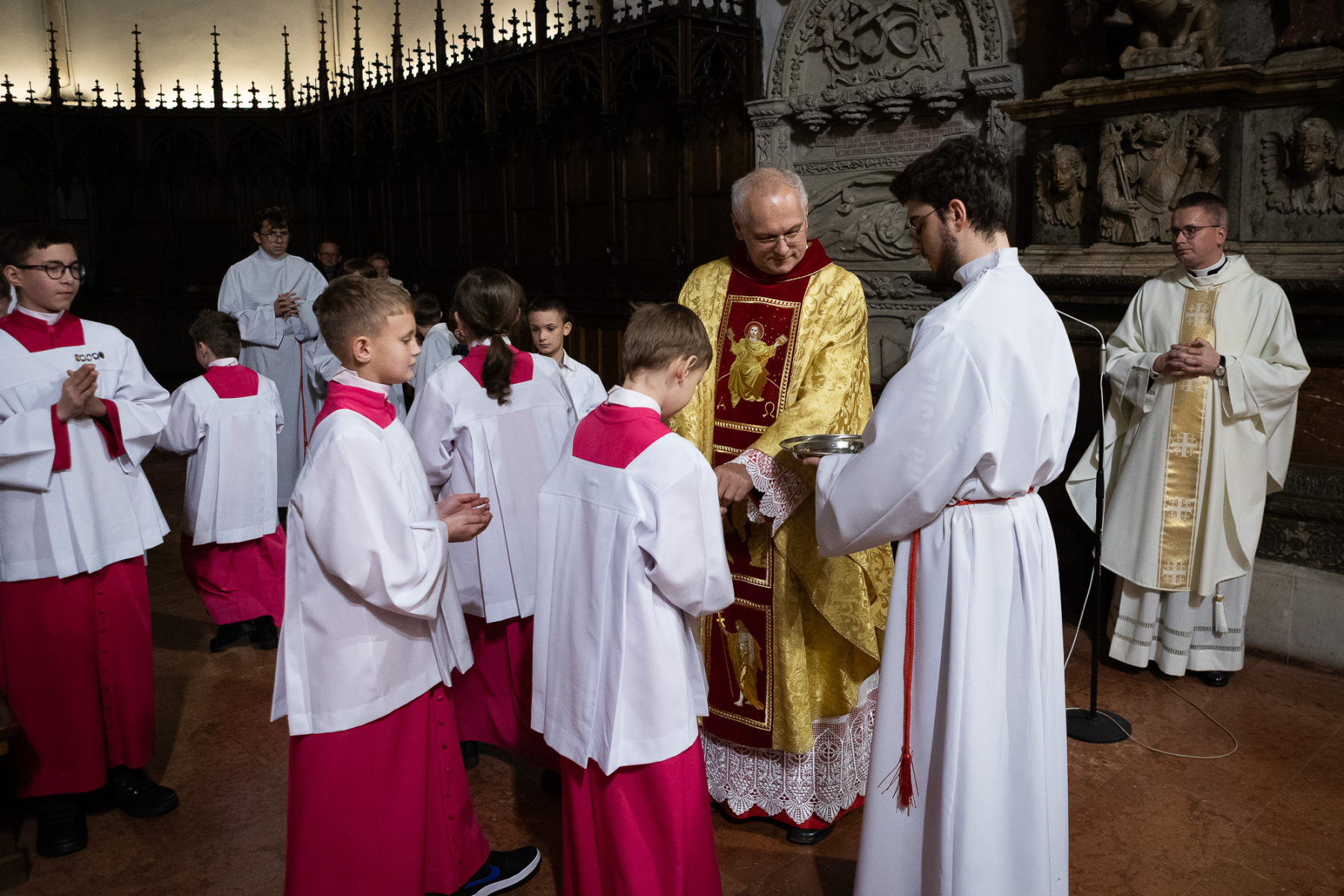 – Rzeczywiście w tym dniu aspiranci otrzymują komże i oficjalnie stają się kandydatami na ministrantów, a starsi ministranci otrzymują specjalny znaczek za rok służby oraz znaczek kolejnego stopnia, ministranta choralisty. Chłopcy zdają egzamin teoretyczny i praktyczny na kolejne stopnie. Czują nieustanny rozwój duchowy i intelektualny