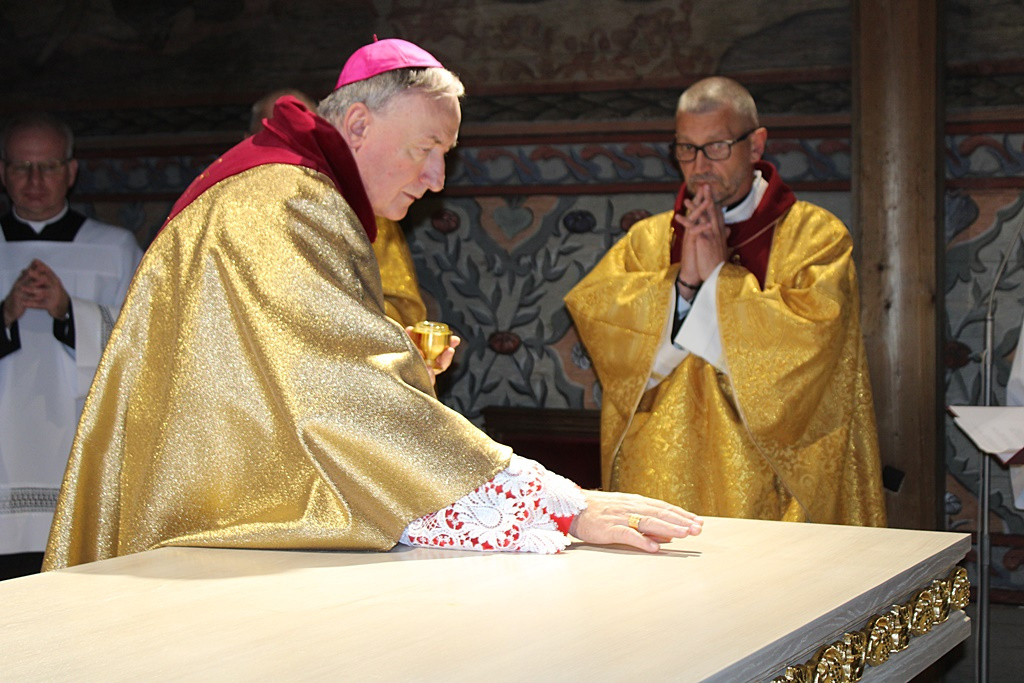 Ordynariusz Diecezji Tarnowskiej namaścił i okadził ołtarz oraz umieścił w jego wnęce relikwie św. Klemensa.  Biskup Andrzej Jeż podkreślił rolę ołtarza, który jest centralnym punktem świątyni, jako miejsca, gdzie realizuje się Najświętsza Ofiara Chrystusa. Jak dodał, ołtarza powinien promieniować z Domu Bożego do naszych rodzinnych domów, bo przy nim zaczęła się historia naszego życia.