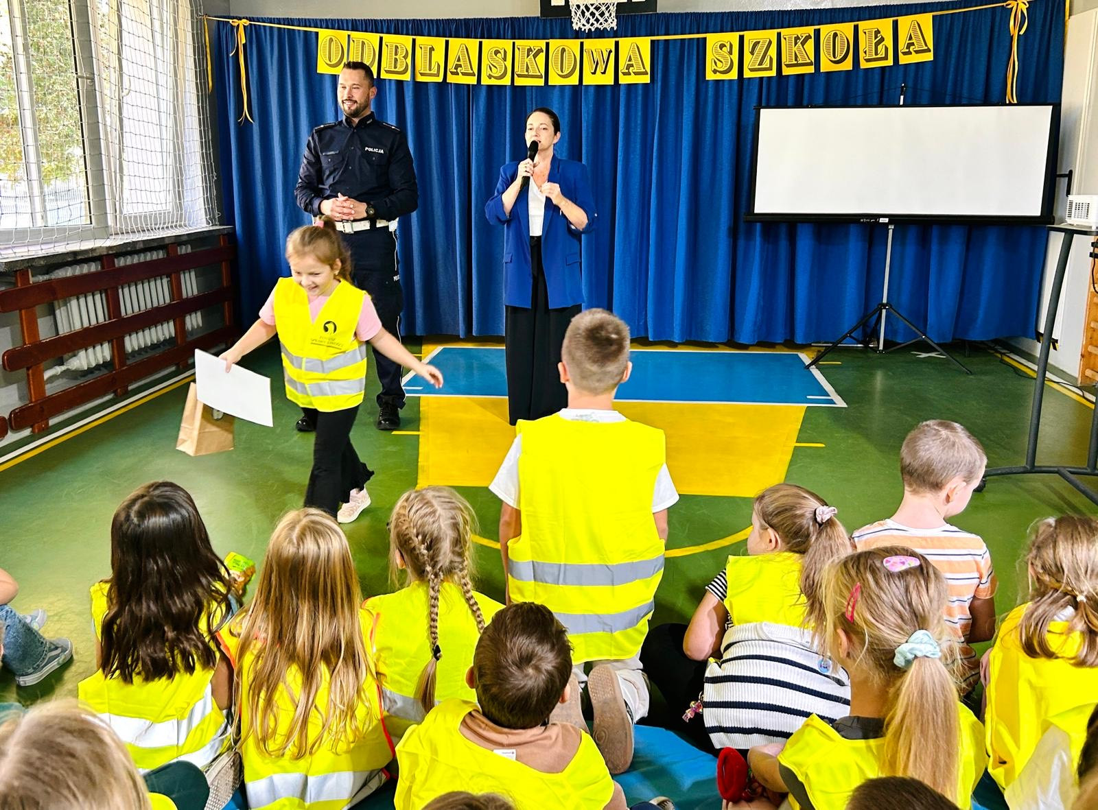 Jednym z kluczowych elementów programu było spotkanie uczniów z policjantem, który przeprowadził warsztaty dotyczące zasad bezpiecznego poruszania się po drogach. Dzięki praktycznym przykładom i rozmowom dzieci zrozumiały, jak ogromną rolę odgrywa noszenie odblasków, szczególnie jesienią i zimą.