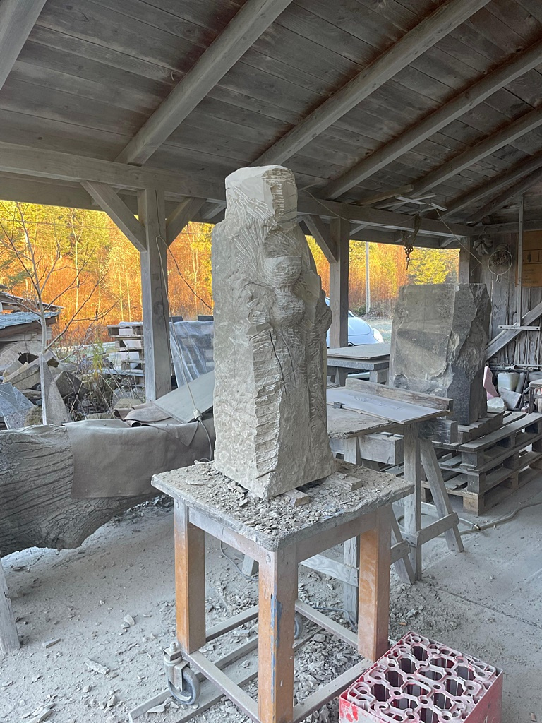 Kamienny posąg powstał w pracowni Augustyna Pogwizda, lokalnego artysty z Paszyna. Pomysłodawcami byli sami pracownicy kamieniołomu, których wspierał wójt gminy Chełmiec, Stanisław Kuzak.