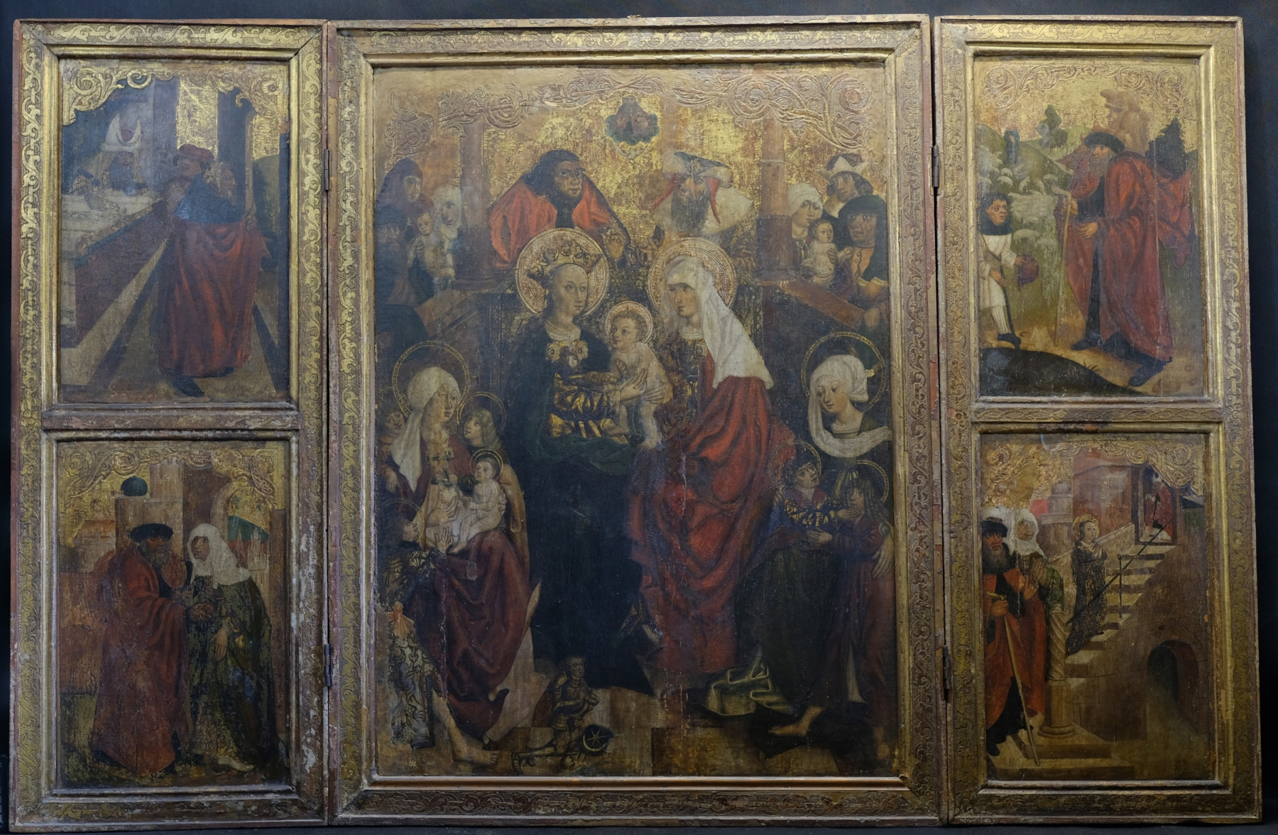 Przed rozpoczęciem prac stan tryptyku był alarmujący. Drewniane podobrazie zostało mocno osłabione przez drewnojady, a liczne ubytki zaprawy i warstwy malarskiej zniekształcały odbiór wizualny dzieła. Dodatkowo, dawne, niefachowe naprawy doprowadziły do pociemnienia i zżółknięcia powłok, a odwrocie środkowej części było zamalowane białą farbą.