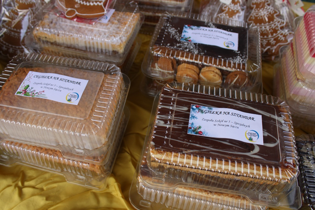 – To jest kontynuacja żywej szopki. W tym roku wprowadziliśmy również za pomocą Rady Rodziców Kiermasz Ciast Świątecznych. Te ciasta są od naszych podsądeckich ciastkarni. Mamy również bigos od restauratorów sądeckich, bo zbieramy cegiełkę na sztandar szkoły z racji tego, że w następnym roku będziemy obchodzić 60-lecie założenia naszej szkoły. Trzeba wspomnieć, że jest to zaangażowanie całej wspólnoty szkolnej – nauczycieli, panów z administracji, rodziców, uczniów. Wszyscy się włączamy w ten wspaniały, piękny cel. Musimy coś robić, żeby te nasze dzieci były bardziej uśmiechnięte i szczęśliwe.