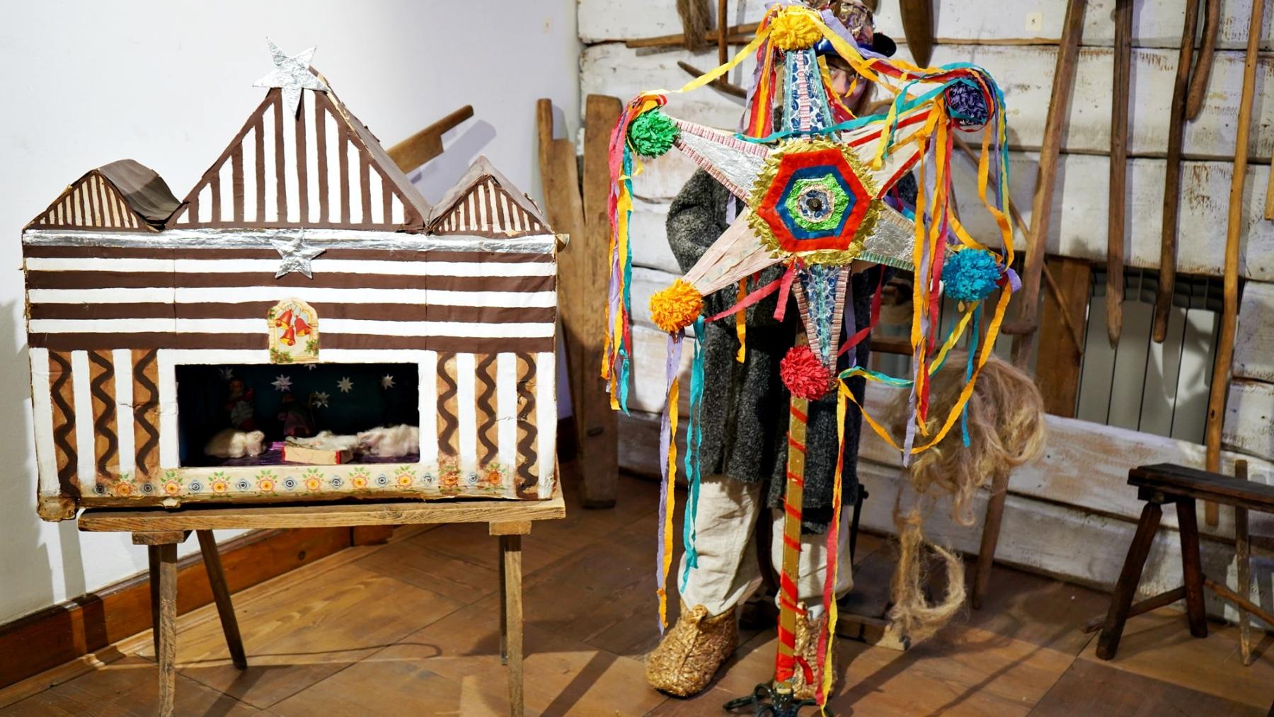 Ekspozycję uzupełniają ręcznie wykonane ozdoby, stroje i akcesoria kolędnicze, takie jak maski, czapki, szopka czy gwiazda, a także obraz 'Kolędnicy” autorstwa malarki ludowej Bronisławy Trzaskuś.