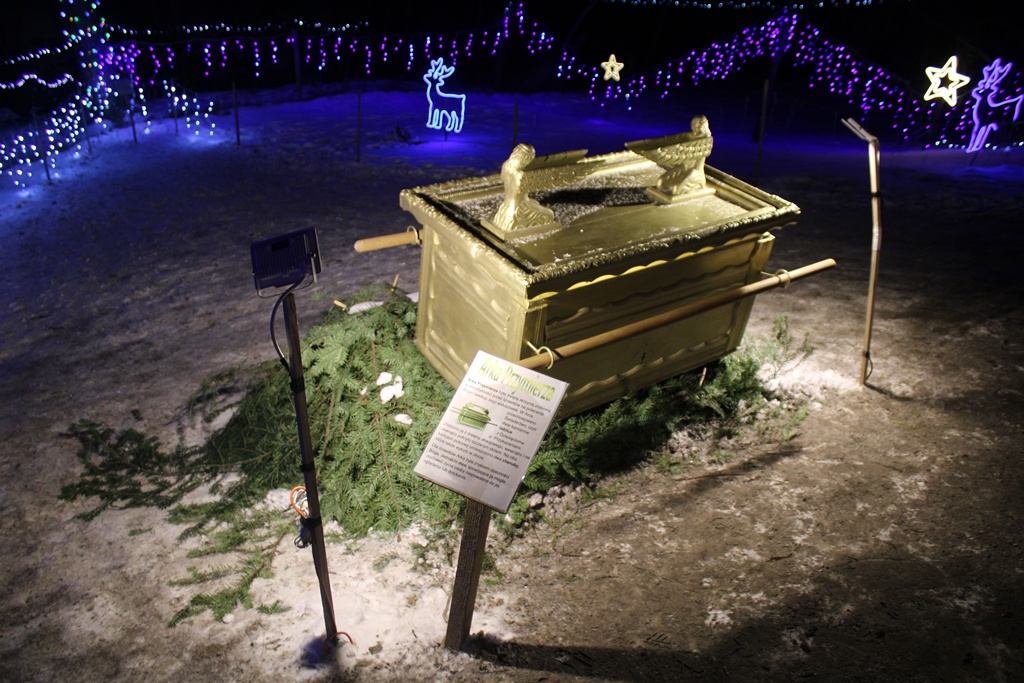 Warto dodać, że są tu nietypowe dla tradycyjnej szopki elementy – takie jak strefa patriotyczna, ale też instalacje inspirowane czytaniami z Pisma Świętego. Ta sekcja cały czas jest rozbudowywana, a na zaczęło się od Arki Przymierza.